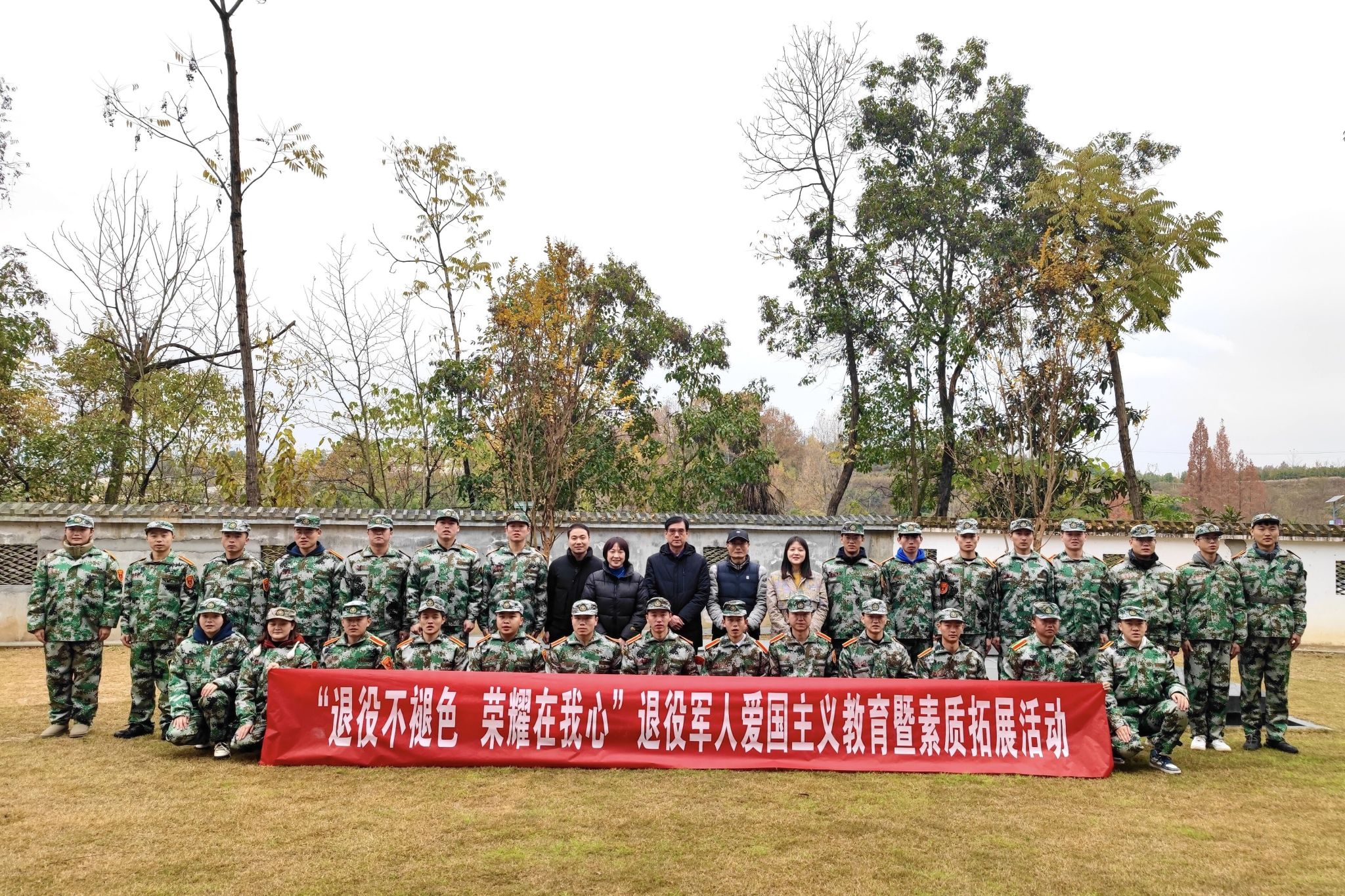 11月25日,ac米兰学工部(武装部)部长李岩、副部长王璐带队组织30余名退役大学生前往恒口民兵训练基地和恒口雨帽岭开展了“退役不褪色,荣耀在我心”退役大学生爱国主义教育暨素质拓展活动。