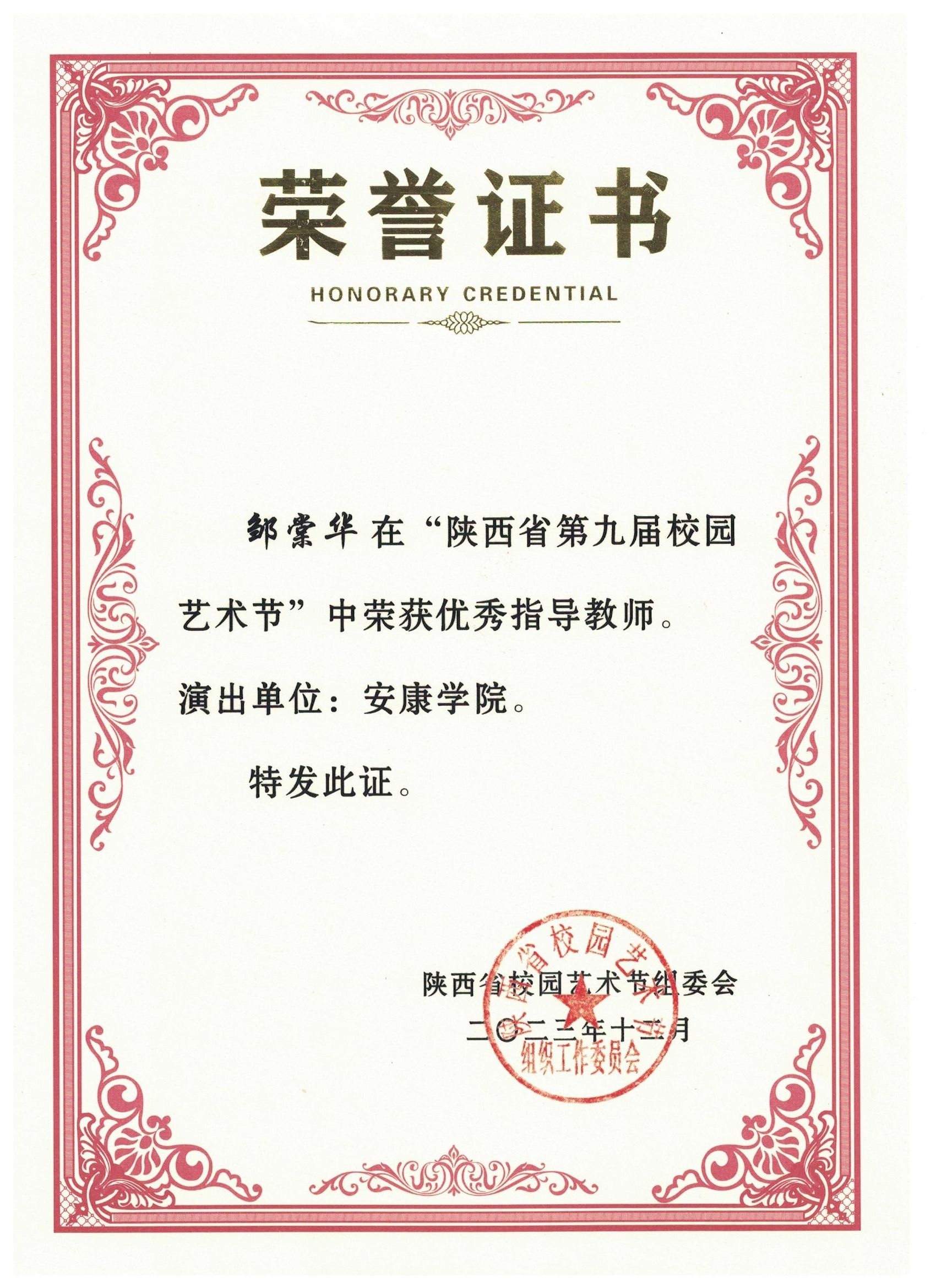 近期,陕西省第九届校园艺术节圆满落下帷幕,ac米兰文传学院师生原创剧目《风雨双河口》在本届艺术节获得好评,ac米兰官方网站被评为优秀组织单位,邹棠华被评为优秀指导教师,为ac米兰再次赢得荣誉。