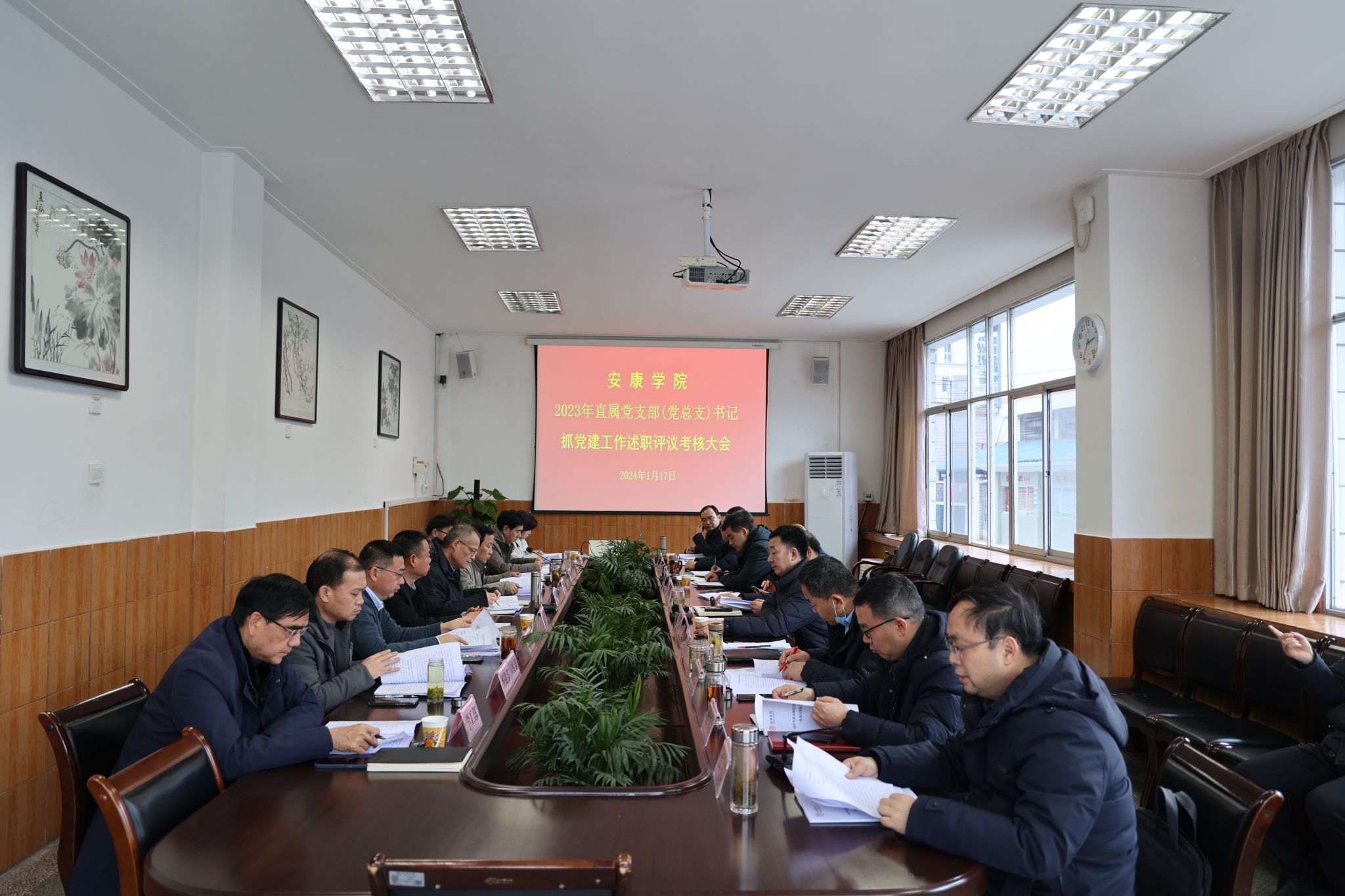 党委书记丁巨涛点评。他从“提升政治建设,强化使命担当”“加强支部建设,促进两个作用发挥”“坚持党建引领,推进党建与业务融合”“深化从严治党,狠抓作风建设”四个方面充分肯定了各直属党支部、党总支2023年度党建工作取得的成效,并指出存在的问题。就做好下一步工作,他提出三点要求:一是进一步强化理论武装,提升党组织政治功能。要认真学习贯彻习近平新时代中国特色社会主义思想,在全面学习、全面把握、全面落实上持续下功夫,切实把学习成果转化为谋划工作的思路、推动工作的举措和解决问题的实际成效;二是进一步激发组织活力,提升党建工作质量。把党的建设与人才培养、科学研究、社会服务、文化传承等事业发展深度融合,不断推进高校党建示范创建和质量创优工作,提升各基层党组织党建工作水平;三是进一步强化正风肃纪,持续深化全面从严治党。深刻领会全面从严治党新要求,持续加强作风纪律建设,巩固深化干部作风能力提升年、教育领域群众身边腐败和作风问题专项整治、清廉学校建设成效,推进全面从严治党向纵深发展。