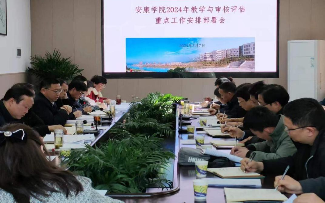 会上,汪义瑞总结了2023年教学工作,对2024年教学工作要点、审核评估工作推进情况及后期重点工作安排做了详细解读;教务处副处长就各自分管的近期主要工作进行了说明;与会人员听取了相关部门、二级学院对教学和审核评估工作的建议。
