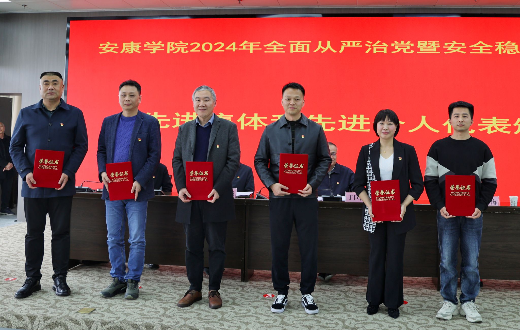 党委副书记余谦宣读学校《关于表彰2023年安全稳定工作先进集体和先进个人的决定》,会议对化学与环境学院、体育学院、艺术学院、经管学院、旅环学院、党政办、组织部、学工部、教务处、后勤处、信息化处11个2023年安全稳定工作先进集体,黄勇、连凤阳等92名2023年安全稳定工作先进个人进行了表彰。