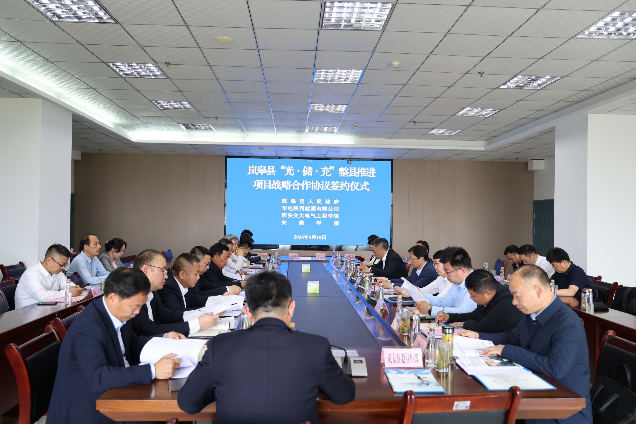 4月18日,“光·储·充”推进项目战略合作协议签约仪式在ac米兰成功举行。华电陕西公司党委书记、董事长马瑞东,西安交通大学教授王跃,ac米兰官方网站校长钟生海、党委副书记余谦,岚皋县县长魏小林出席签约仪式。签约仪式由岚皋县人大常委会主任谢荧主持。
