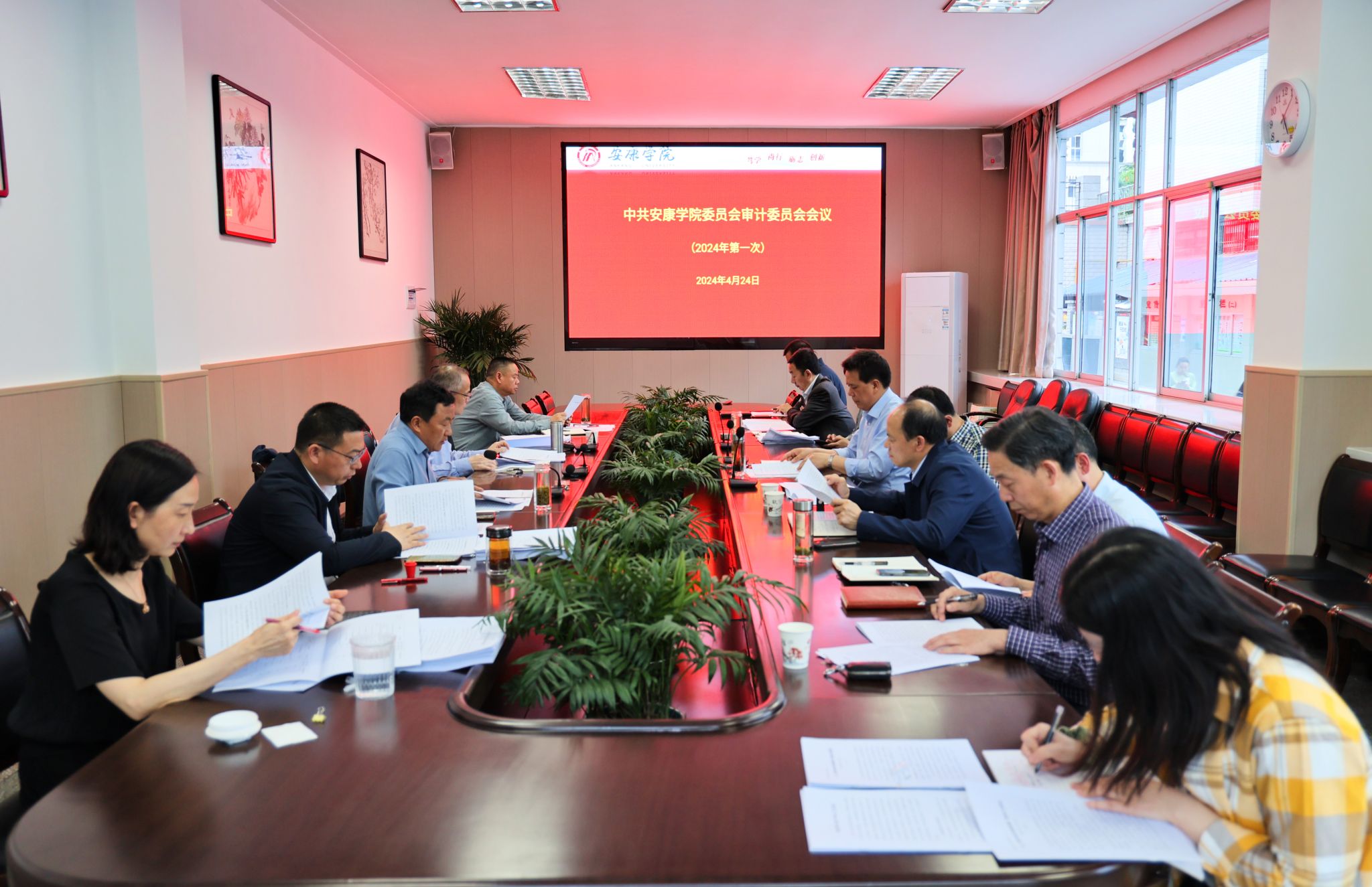 4月24日,中共ac米兰官方网站委员会审计委员会在江南校区会议室召开2024年第一次会议。党委书记、审计委员会主任丁巨涛主持会议并作要求讲话。校长、审计委员会主任钟生海,党委副书记、纪委书记、监察专员、审计委员会副主任安永强,党委副书记、审计委员会副主任余谦,副校长崔晓明出席会议,审计委员会各成员单位负责人参加了会议。