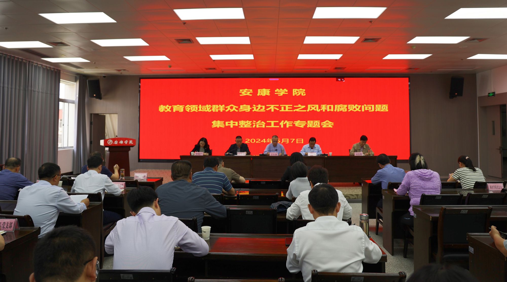5月7日下午,学校在江南校区图书馆六楼学术报告厅召开教育领域群众身边不正之风和腐败问题集中整治工作专题会议。校领导班子成员,各二级学院、各职能部门负责人参加会议。会议由校长钟生海主持。