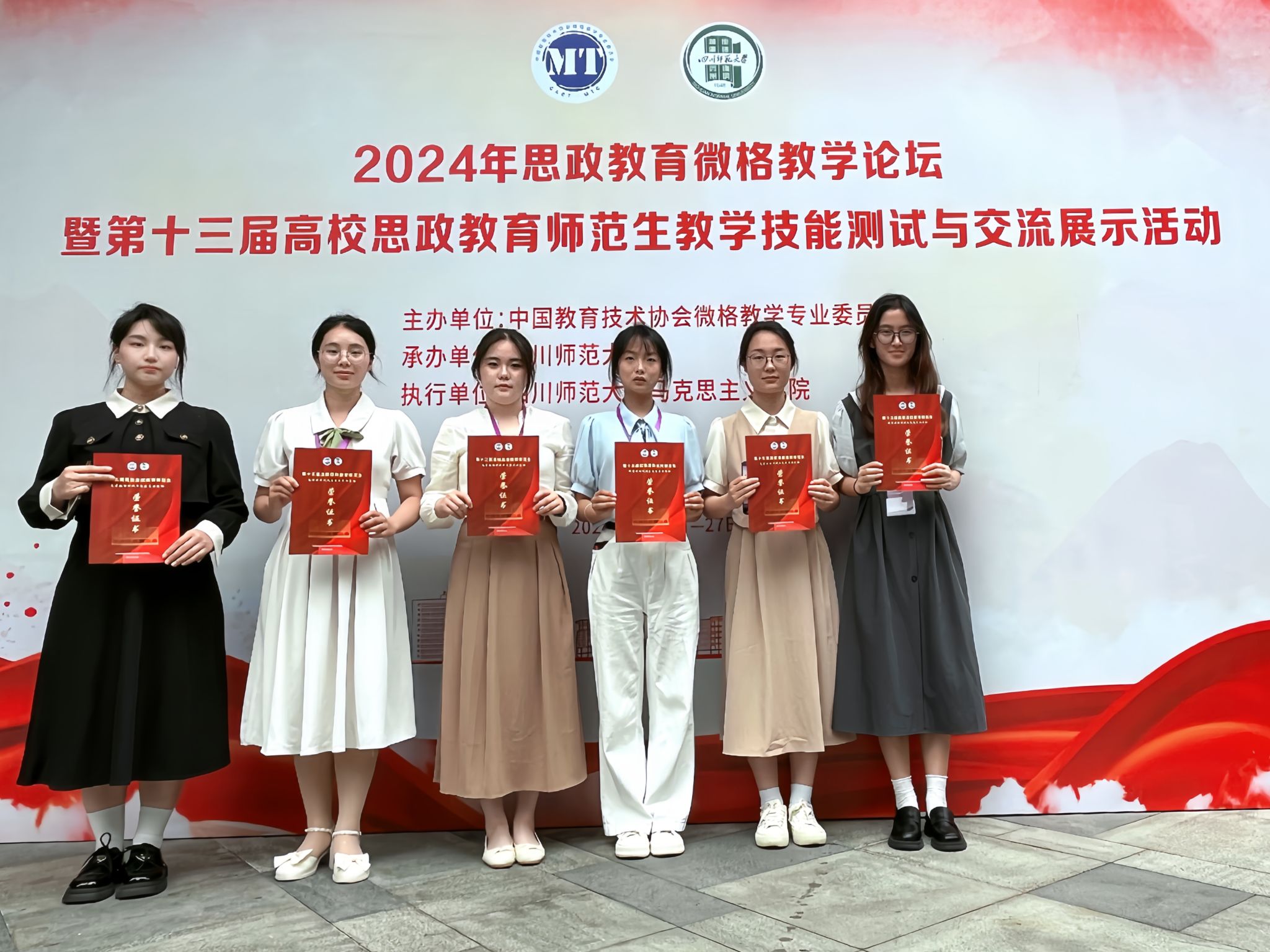 近日,ac米兰马克思主义学院6名学子在孙娟平、吕海花两位教师带领下赴四川师范大学参加2024年思政微格教学论坛暨第十三届高校思政教育师范生教学技能测试与交流展示活动,与来自华中师范大学、安徽师范大学、广西师范大学等全国80余所高校的547名学生同台竞技。经过激烈角逐,ac米兰学子获得一等奖一项、二等奖两项、三等奖三项的好成绩。