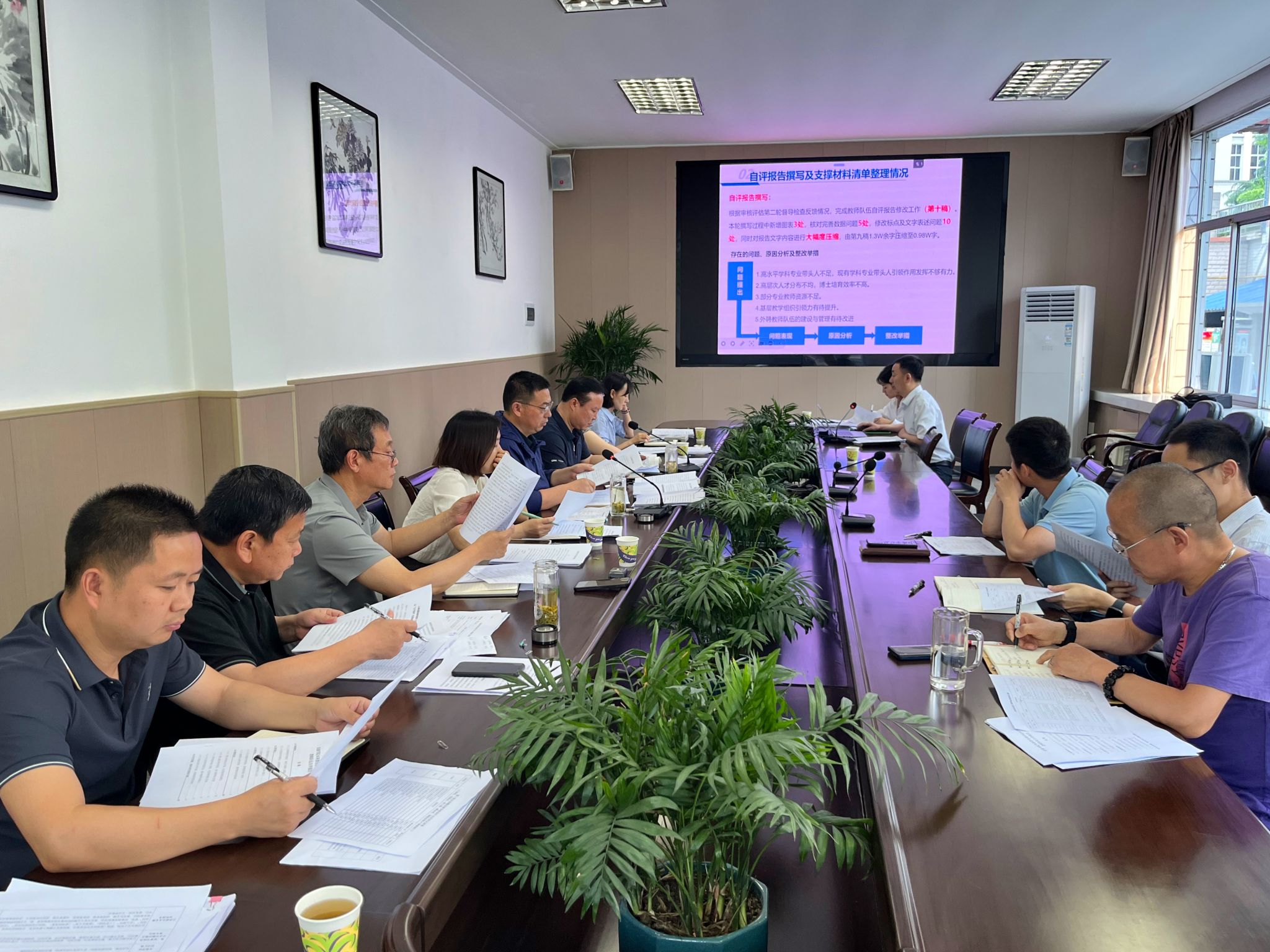督导检查组强调,各二级单位要将自查整改工作与日常教学工作相结合,阶段性整改工作与学校长期建设任务相结合,深入推进重难点工作,开展具有特色亮点的实体性工作。各职能部门要进一步学习理解审核评估指标内涵,结合部门职责,对标指标体系,挖掘服务本科教育教学工作亮点,凝练特色,总结育人成效;各二级学院要进一步强化教风、学风建设;开展说课、磨课、课改沙龙等教研活动,提升教师课堂教学水平;结合课程教学内容,进一步加强行业企业课程资源库和真实项目案例库建设;尽快查漏补缺,用好问题销号台账,做好自查整改工作,切实提高人才培养质量。