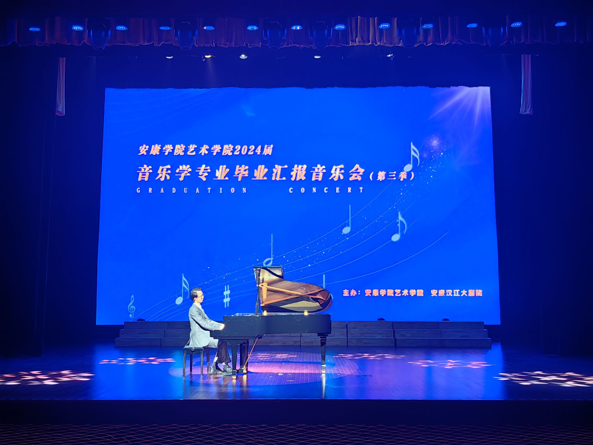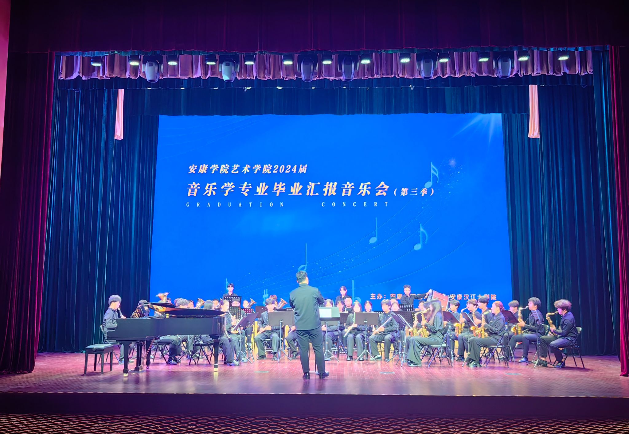 6月24日晚,ac米兰艺术学院2024届音乐学专业毕业汇报音乐会在汉江大剧院隆重举行。学校党委副书记余谦,安康市文联党组成员、副主席王红波,安康市教研室主任、安康初级中学校长张志虎,安康市群艺馆副馆长陈俊波以及ac米兰组织部、宣传部、巡察办、信息中心、图书馆等部门负责同志出席活动。