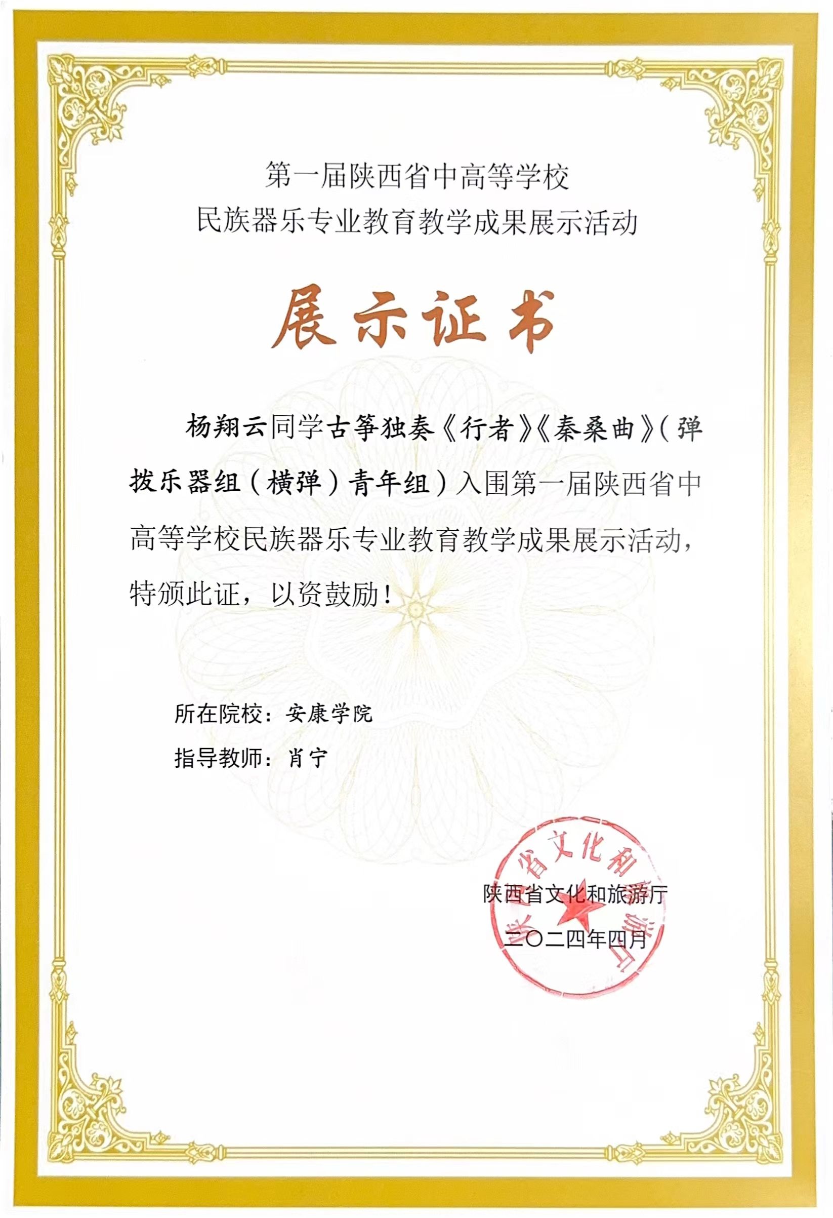 日前,由陕西省文旅厅主办的陕西省第一届中高等学校民族器乐专业教育教学成果现场展示活动在省文化馆曲江馆区隆重举行。