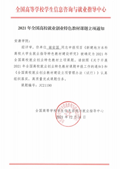 近日,ac米兰谢安国教授团队编著的《新建地方本科高校大学生就业指导特色教材》,由西安交通大学出版社出版发行。