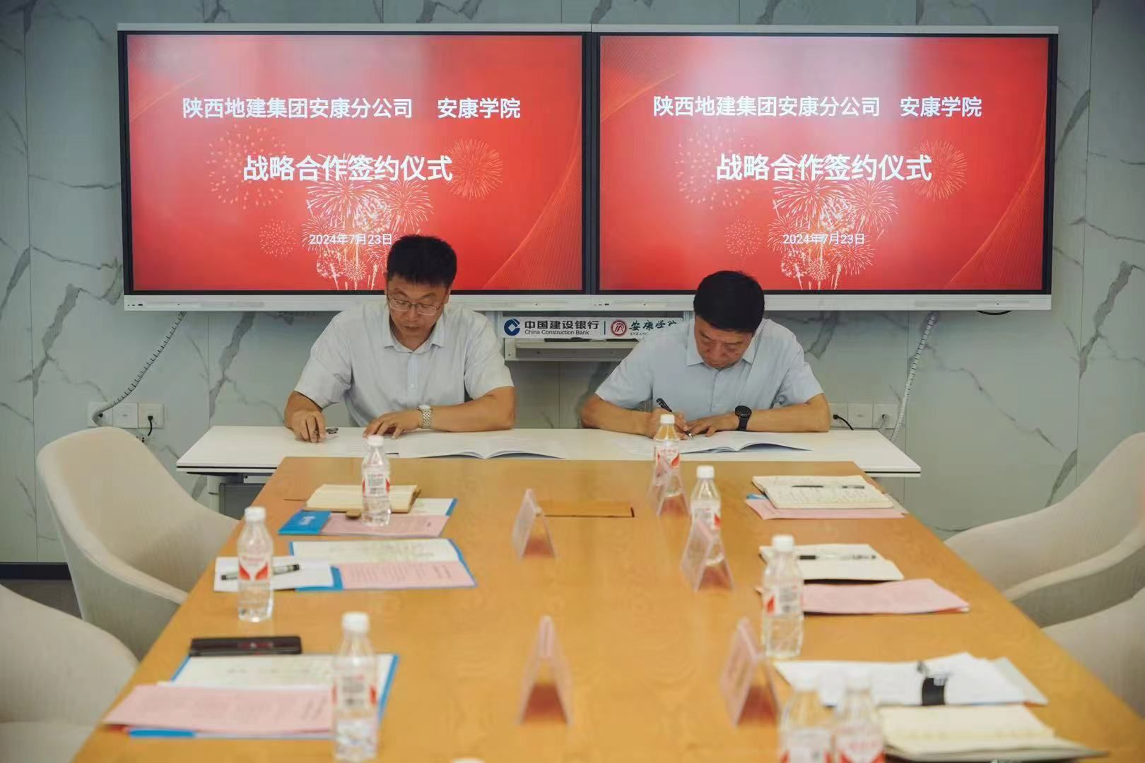 张东红、盛刚代表双方签订了校企合作协议。陕西地建集团安康分公司副总经理刘博、总工程师赵晓晓,ac米兰化环学院、农生学院有关部门负责人参加了会议。