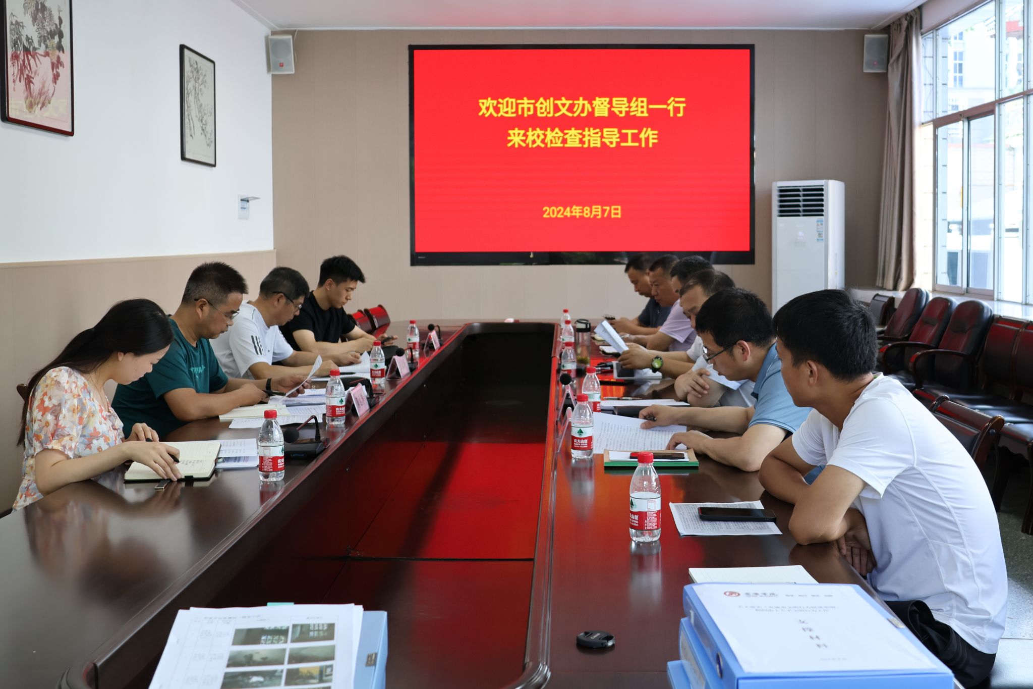 8月7日,市创文办第六督导组组长陈延辉一行,来学校检查指导《安康市文明行为促进条例》执行和十大不文明行为纠治工作。党委委员、宣传部部长田兆杰主持座谈会,保卫处、后勤处负责人参加了会议。