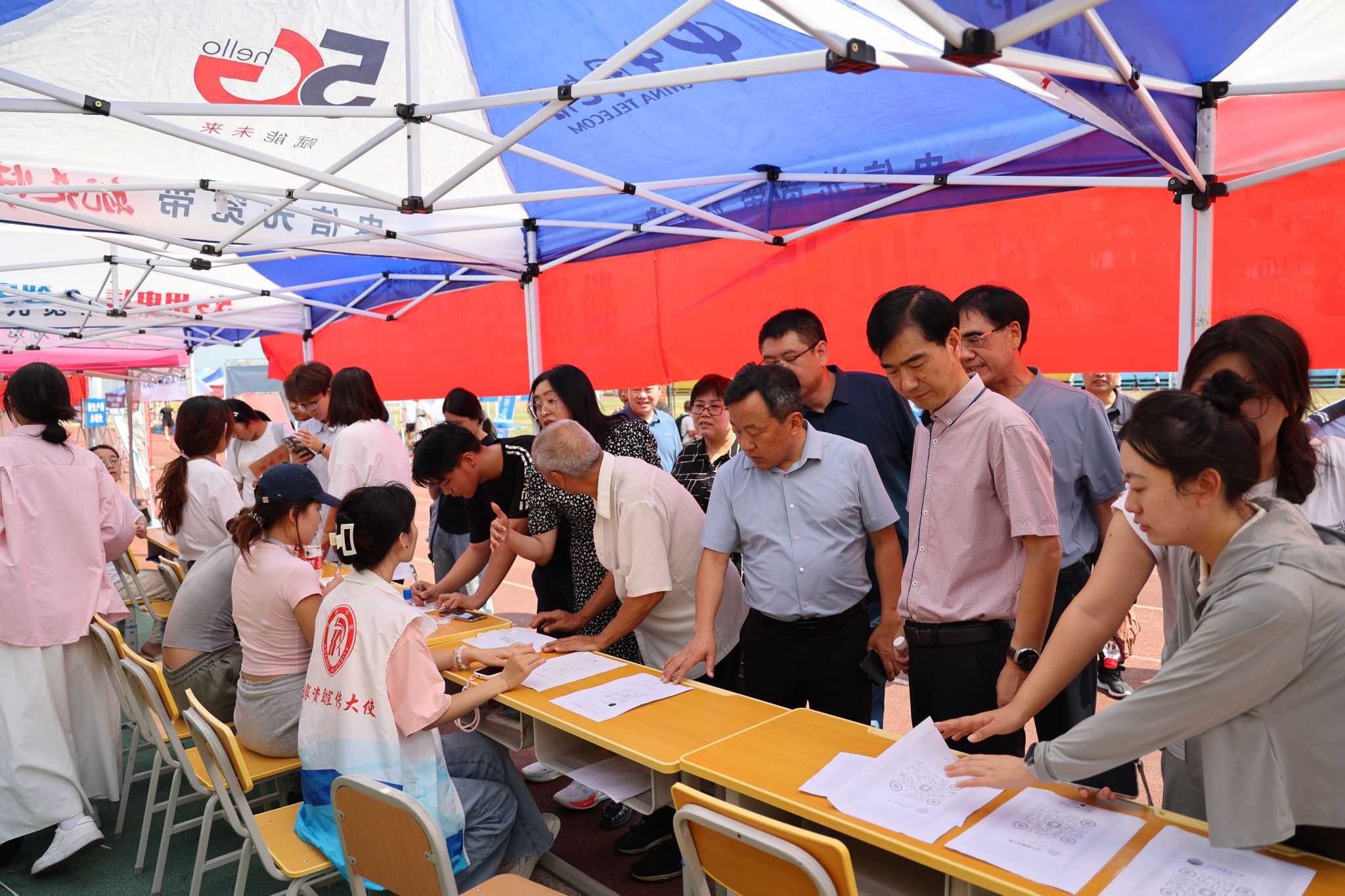 检查组一行深入迎新通道、二级学院迎新点、宿舍、食堂等重点区域和场所,重点检查了迎新工作点布置、宣传氛围营造、校园安全和交通疏导等工作,听取了相关单位负责人关于迎新的工作汇报,并从校园安全、人文关怀等方面做出了具体要求。