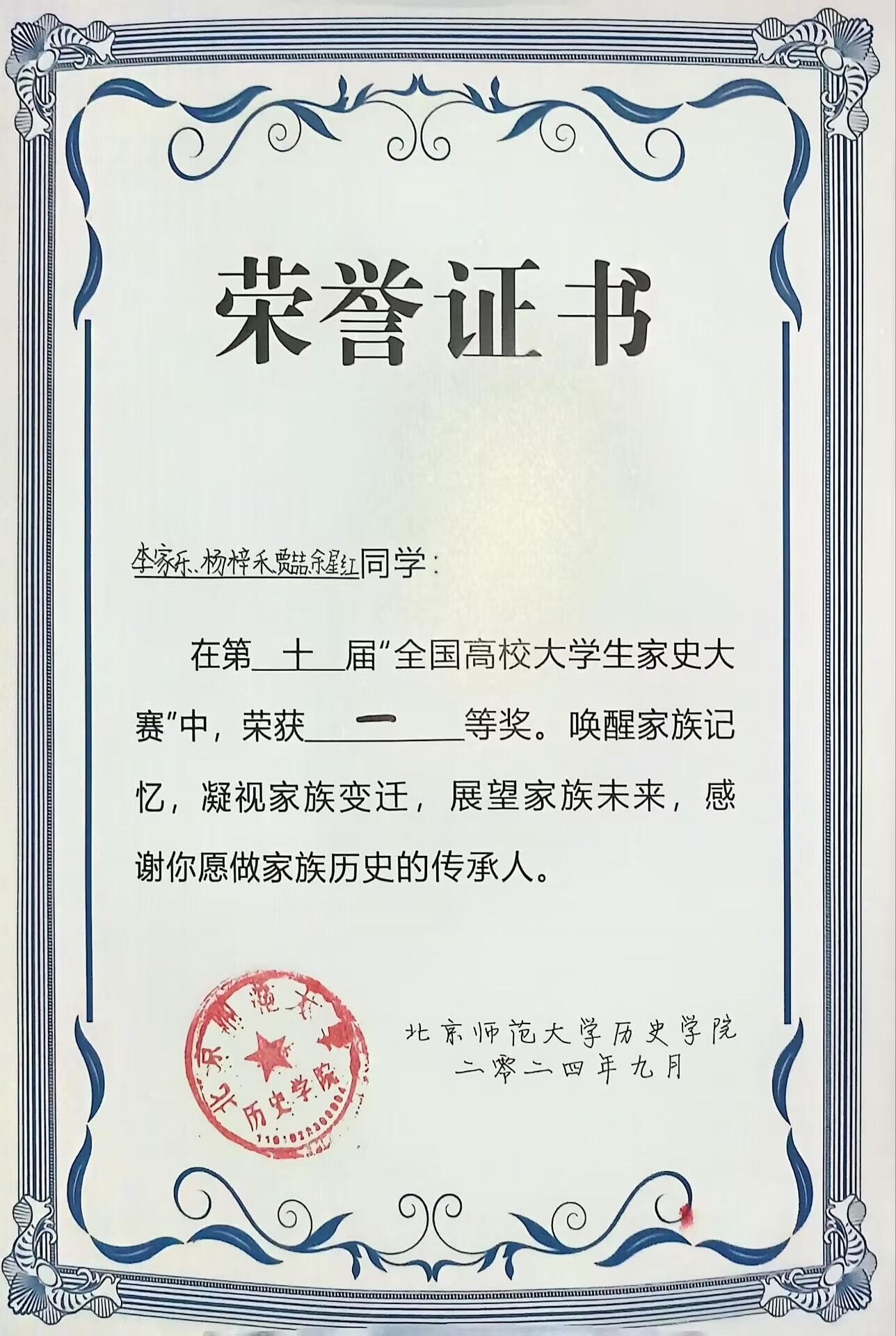 近日,第十届全国高校大学生家史大赛获奖名单正式公布。ac米兰文传学院网络与新媒体专业2021级学生李家乐、杨梓禾、贾喆、余星红以组合作品《光缆英雄铸国防 兵心热忱映边疆》《老山烽火铸忠魂 英雄热血卫家国》《退伍不褪色,退役不褪志》荣获本届家史大赛视频组一等奖。