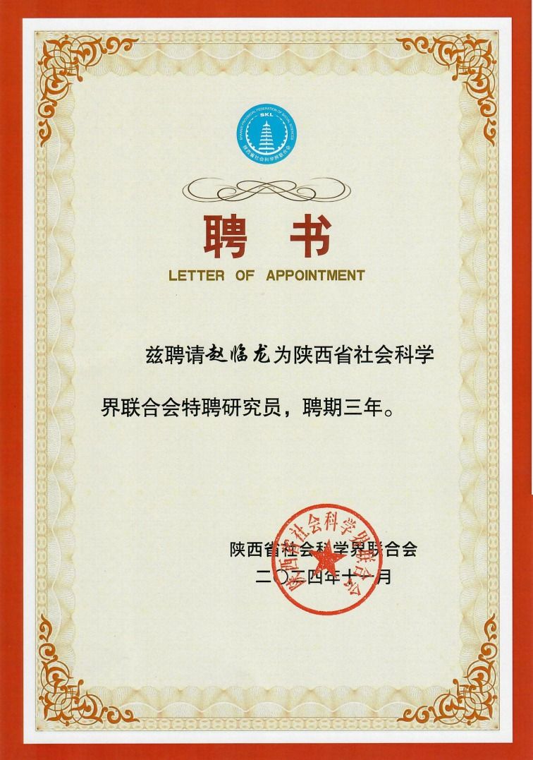 会上,陕西省社科联党组成员、副主席李谫博宣读了《关于聘任王彦军等234人为陕西省社科联特聘研究员的决定》,ac米兰赵临龙、谢安国、李景林三名教师被聘为陕西省社科联特聘研究员。