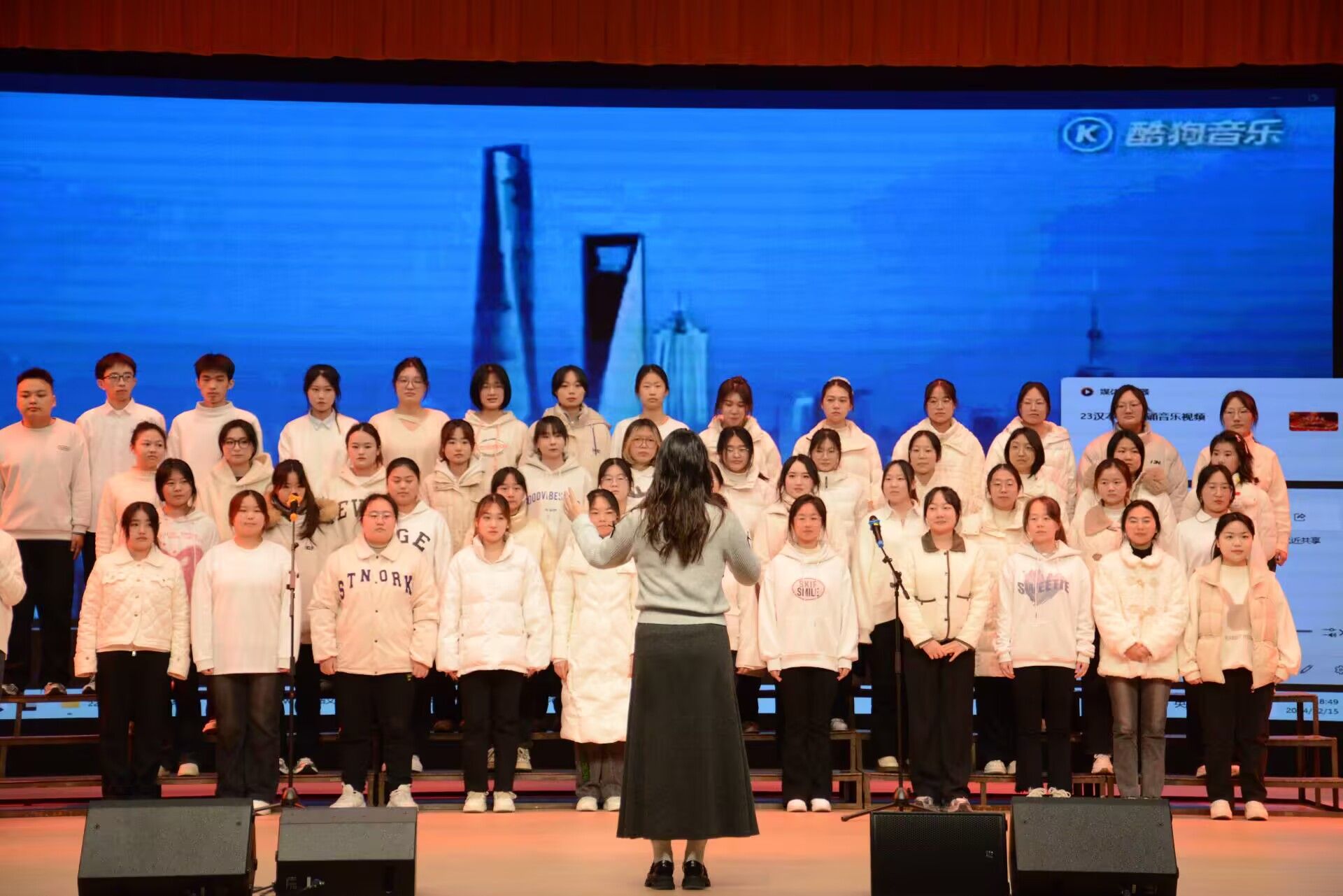比赛现场气氛热烈,座无虚席。各参赛班级依次登台,用激昂嘹亮的歌声演绎了一首首经典红色歌曲。从《我爱你中国》优美的旋律开篇,《看山看水看中国》到《我和我的祖国》《没有共产党就没有新中国》《歌唱祖国》的深情诉说,同学们精神饱满,歌声嘹亮,整齐划一,充分展现了班级凝聚力和积极向上的精神风貌。大家用真挚的情感和动人的歌声,表达了对党的忠诚与热爱,对祖国繁荣昌盛的美好祝愿。
