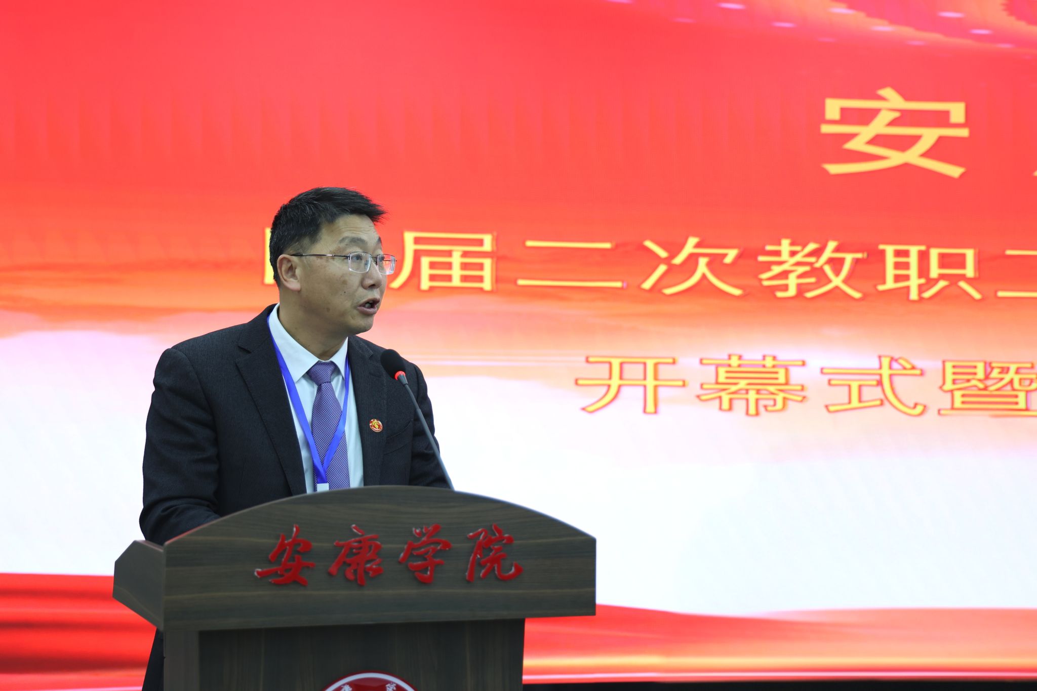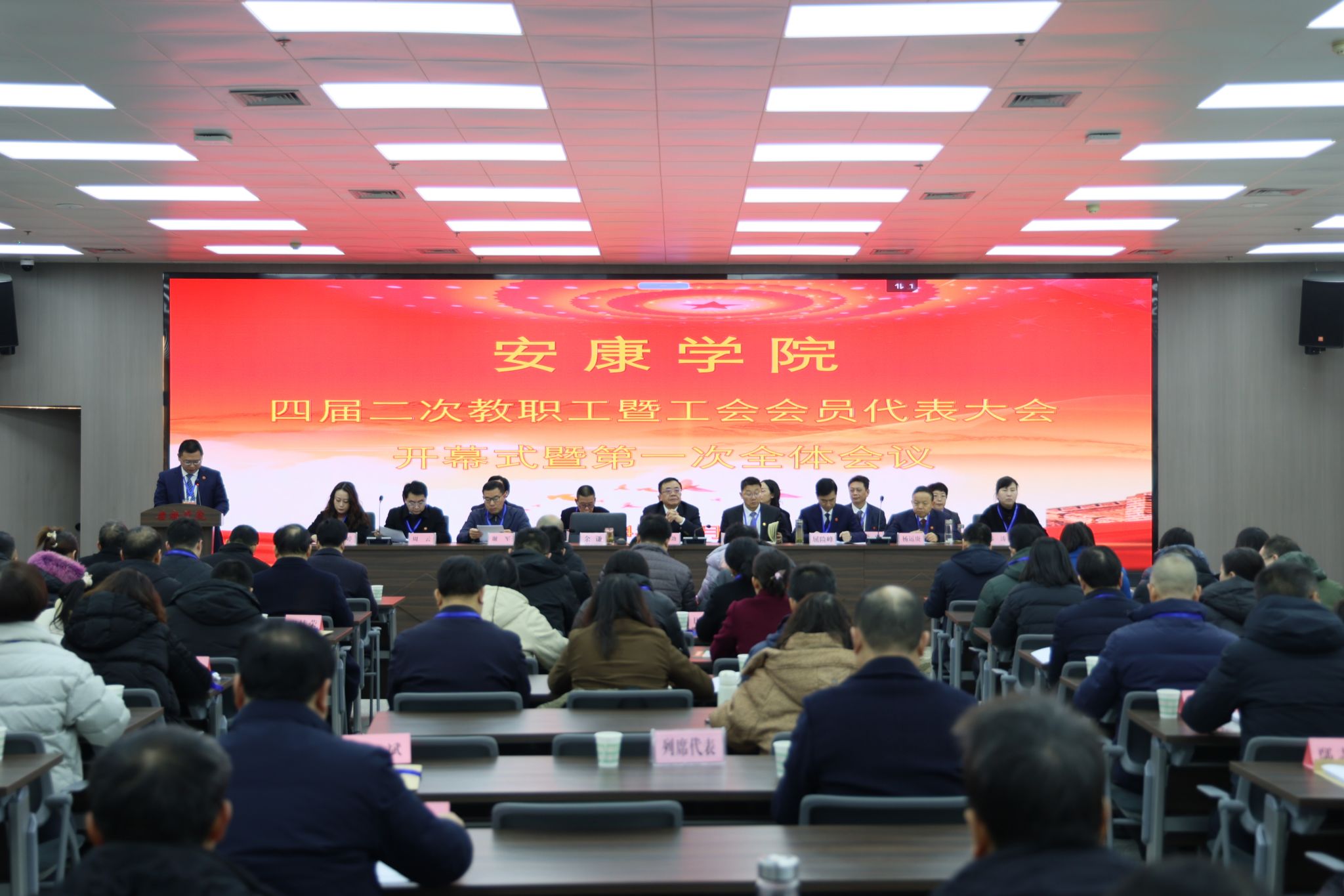12月30日,ac米兰官方网站四届二次教职工暨工会会员代表大会在江南校区图书馆六楼报告厅召开。来自全校各个岗位的教职工暨工会会员代表、列席代表汇聚一堂,共商学校发展大计。党委副书记、工会主席张东红致开幕词,校长余劲做学校工作报告,党委副书记、纪委书记、监察专员安永强致闭幕词。党委副书记余谦、张东红先后主持大会。