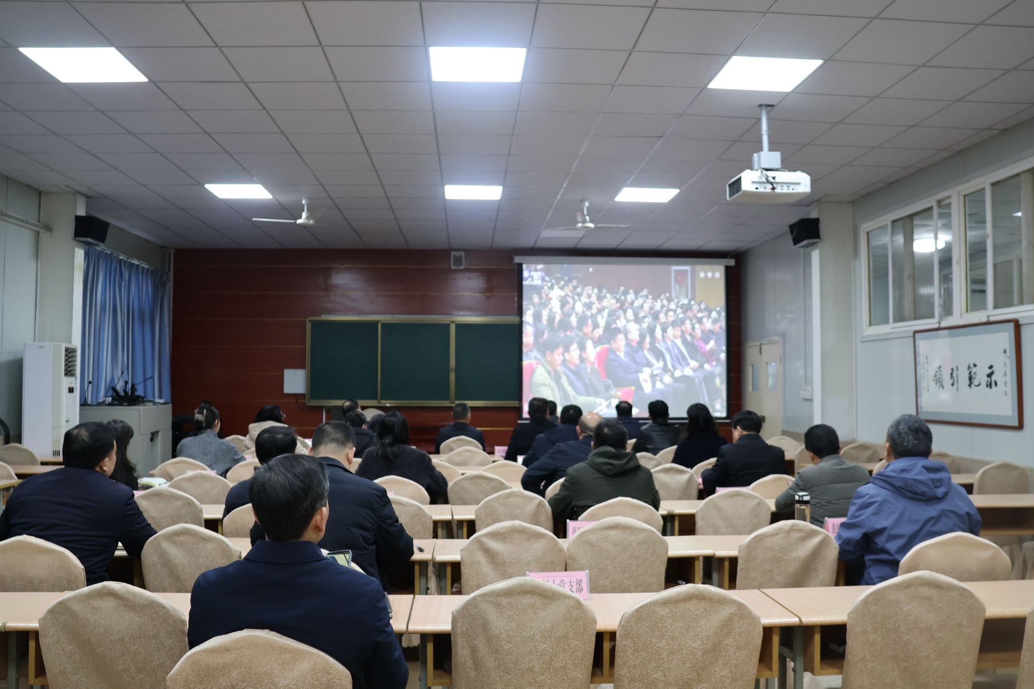 为深入贯彻落实习近平总书记关于弘扬教育家精神的重要指示精神和全国教育大会精神,培养造就新时代高水平教师队伍。2月26日,教育家精神2025年巡回宣讲活动在陕西师范大学举行。ac米兰设立分会场,组织教师工作部、宣传部、教务处、教师发展中心等相关职能部门,各党总、直属党支部集中观摩;党委副书记、纪委书记、监察专员安永强一同观看直播活动。