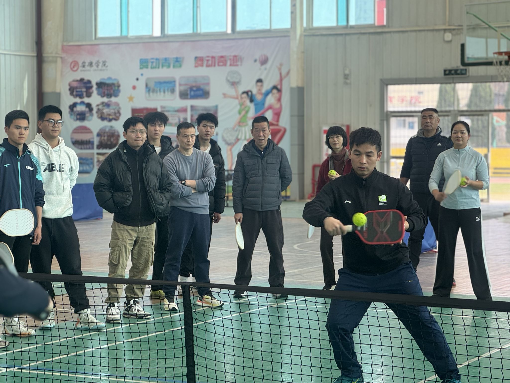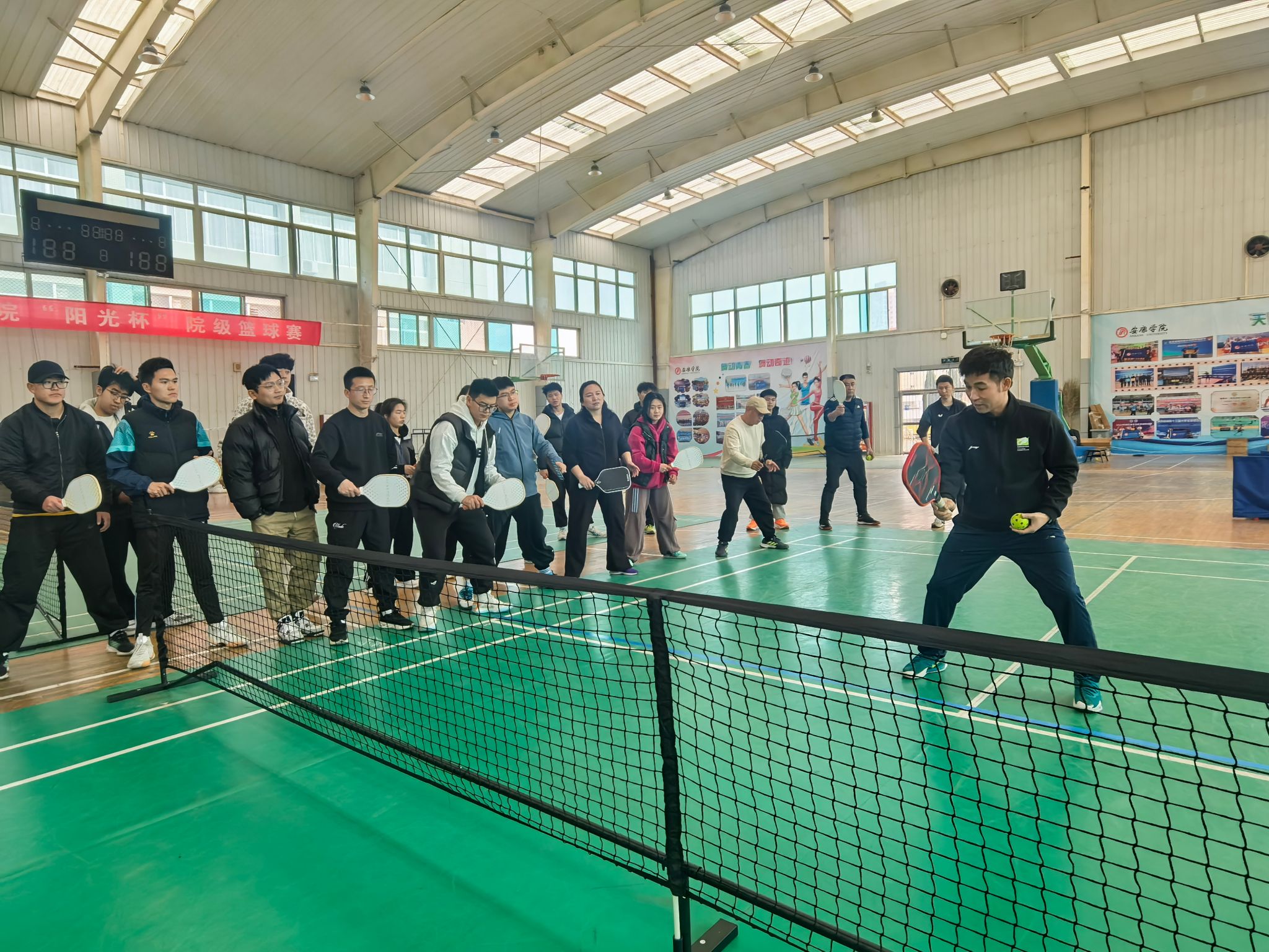 附:匹克球是融合羽毛球、乒乓球和网球的新运动,它场地需求小,灵活适配体育馆或户外空地;规则简单,可快速上手并享受竞技乐趣;运动强度适中,既能锻炼反应力与协调性,又能缓解压力;球拍轻便、成本低廉且球易获取,活动组织便捷;强调团队协作,促进社交互动,增强校园凝聚力,深受广大师生喜爱。