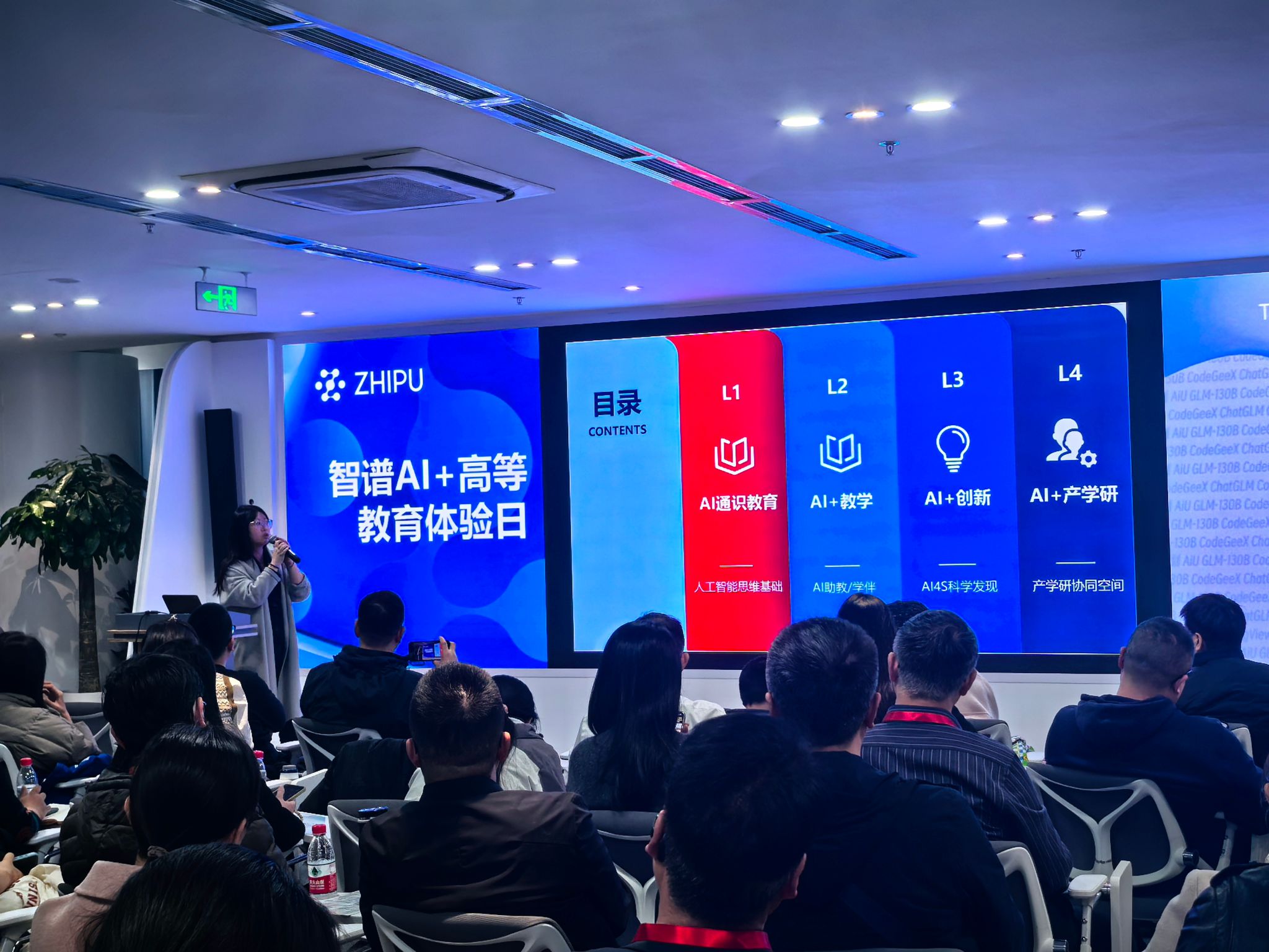 与会代表一同前往北京智谱华章科技有限公司调研学习,该公司以“大模型赋能高校智慧教辅创新场景”为主题,现场演示了智谱清言在教学中的创新应用,包括AI课程建设、教学资源库建设、知识关系网络构建、AI助教服务、多场景教学资源、智能体协作教学等方面。