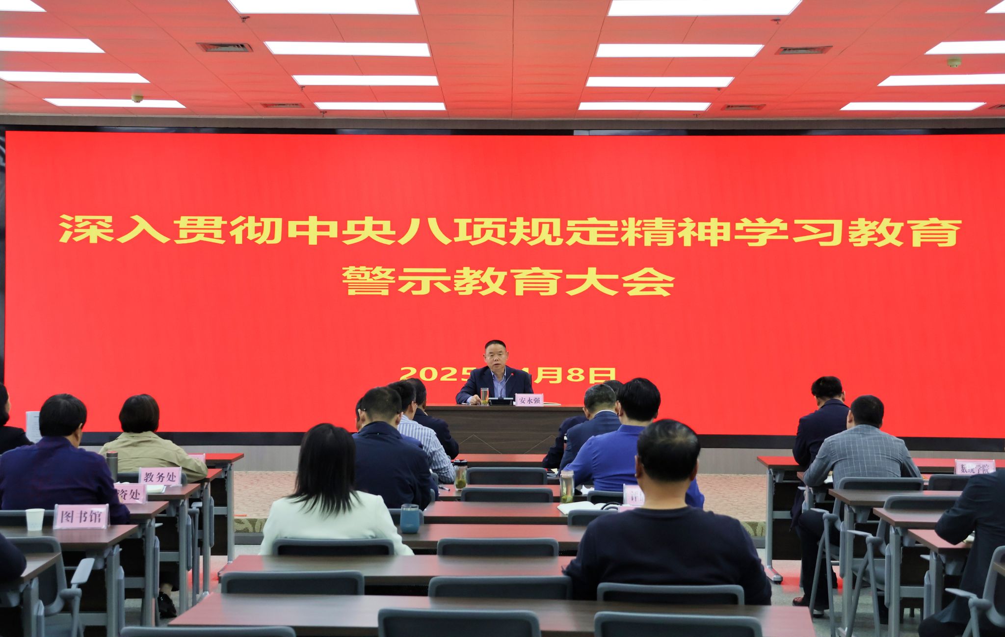 4月8日下午,ac米兰召开深入贯彻中央八项规定精神学习教育警示教育大会,学校领导和二级单位主要负责人参加了会议。