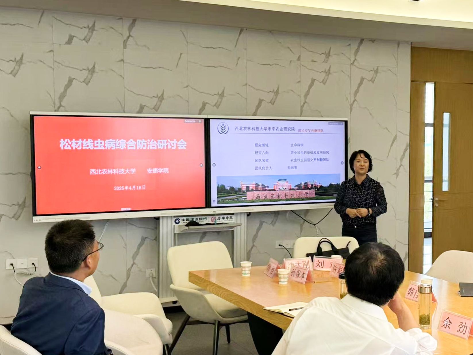 会上,孙丽英教授介绍了团队在松材线虫致病机制及绿色防控技术方面的研究进展;唐光辉教授结合多年实践经验,分享了松材线虫病的防治现状及挑战;韩自端教授就松材线虫病的专项研究设计进行了详细阐述。随后,ac米兰官方网站教师刘欢汇报了松材线虫病在安康地区的发生情况,为后续防控工作提供了重要参考。
