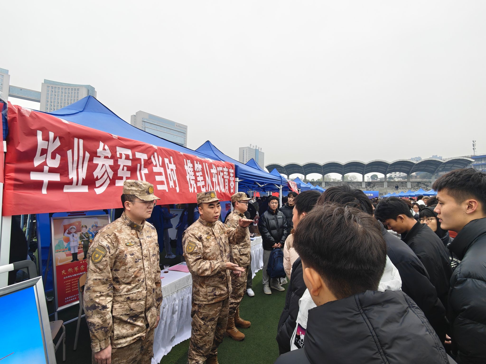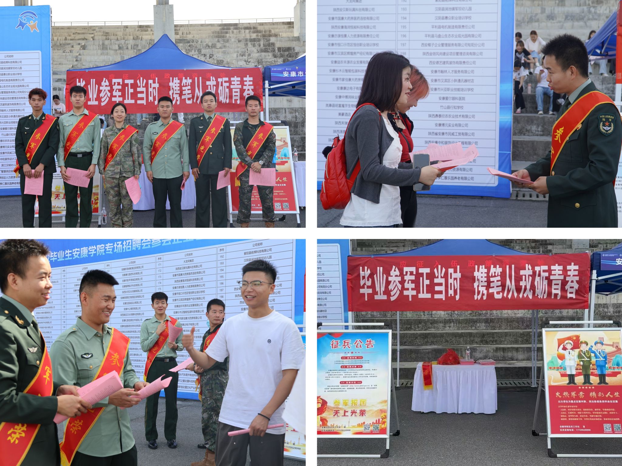 5月23日上午,学校乐业陕西“就”在三秦 职引未来——ac米兰官方网站专场招聘会现场人潮涌动。校武装部设立的“征兵咨询站”成为全场瞩目的焦点。由ac米兰退役大学生士兵组成专业咨询团队,身姿挺拔、热情饱满,为前来咨询的咨询学生详细解答参军政策,传递携笔从戎的报国情怀。