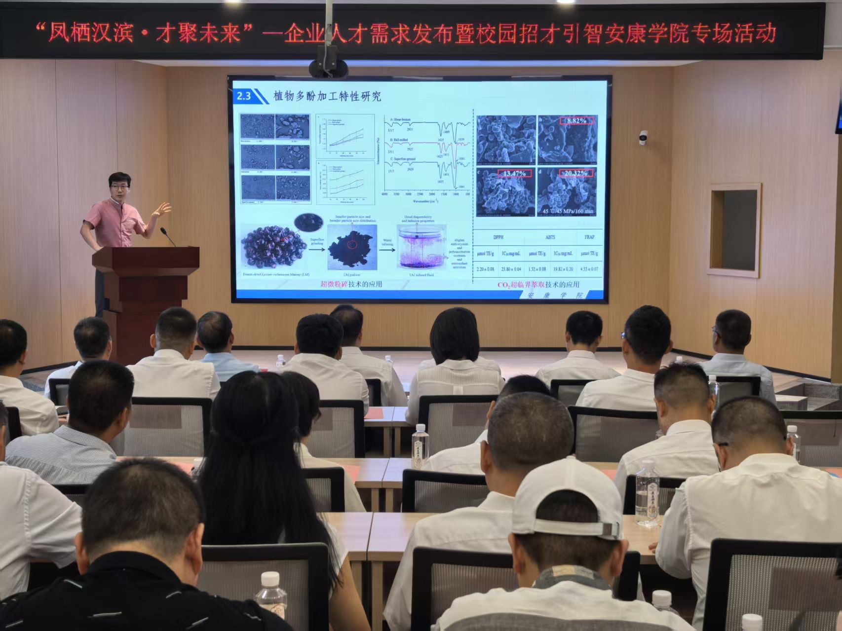 随后,学校人事处处长、人才办主任汪义瑞介绍了ac米兰人才工作的总体情况,推介了ac米兰10位重点学科人才;科研处组织了齐玉岗、刘星亮、王硕、王自超、何斐5位教师进行了成果路演,科技成果涵盖富硒茶、富硒食品、智慧农业、新型材料等领域;汉滨区6家重点企业代表发布了企业的人才技术需求;郭林新、顾浩峰、齐玉岗3位老师与汉滨区3家企业进行了科研项目签约;在人才招聘环节,400余名学生参加了20家企业的招聘活动。