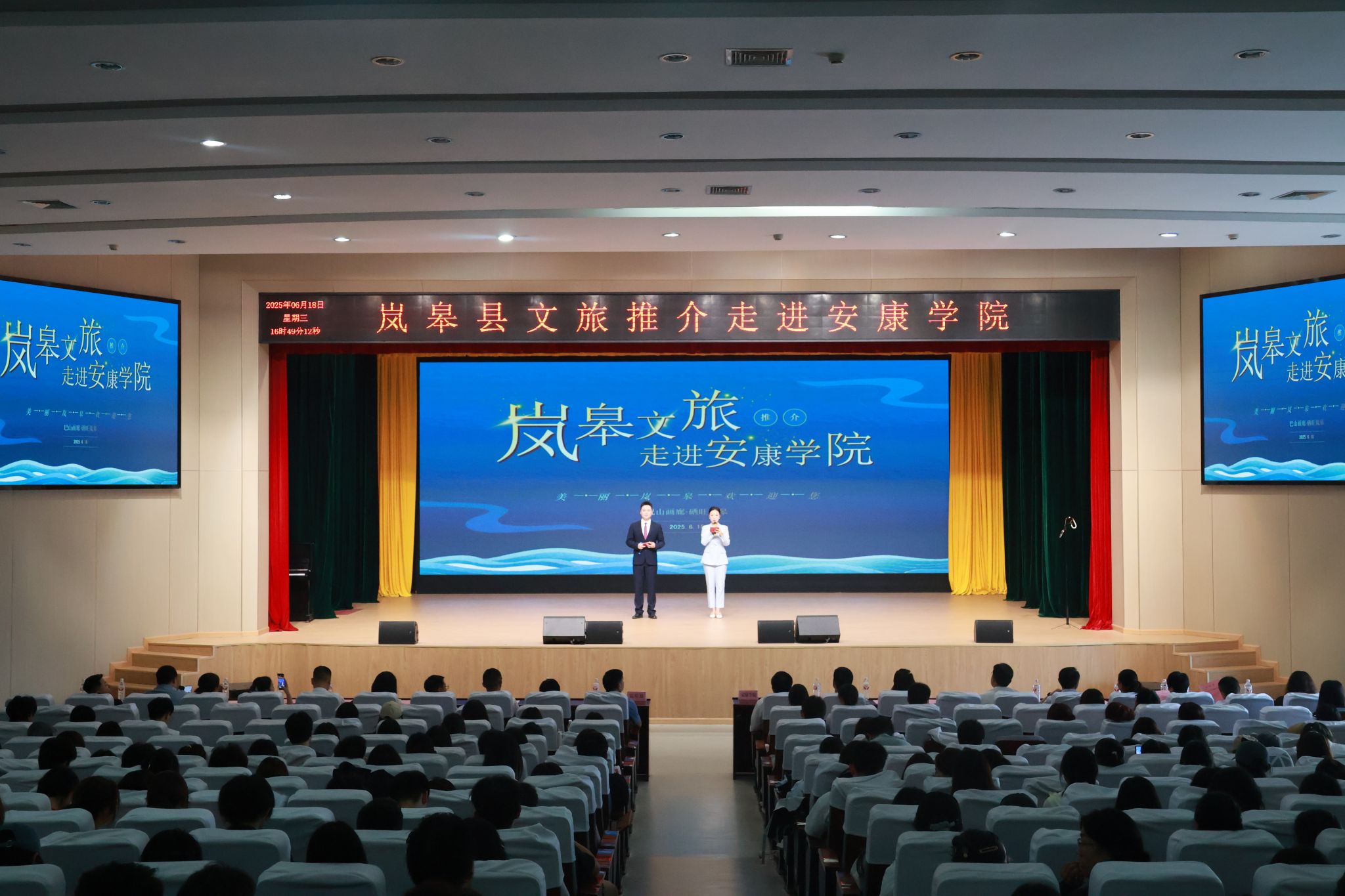随后,在江南校区大礼堂,王仁康一行与学校领导共同参加了岚皋县文旅推介活动。ac米兰编排的精彩节目与岚皋县展现的独特民俗文化,赢得了师生阵阵掌声。