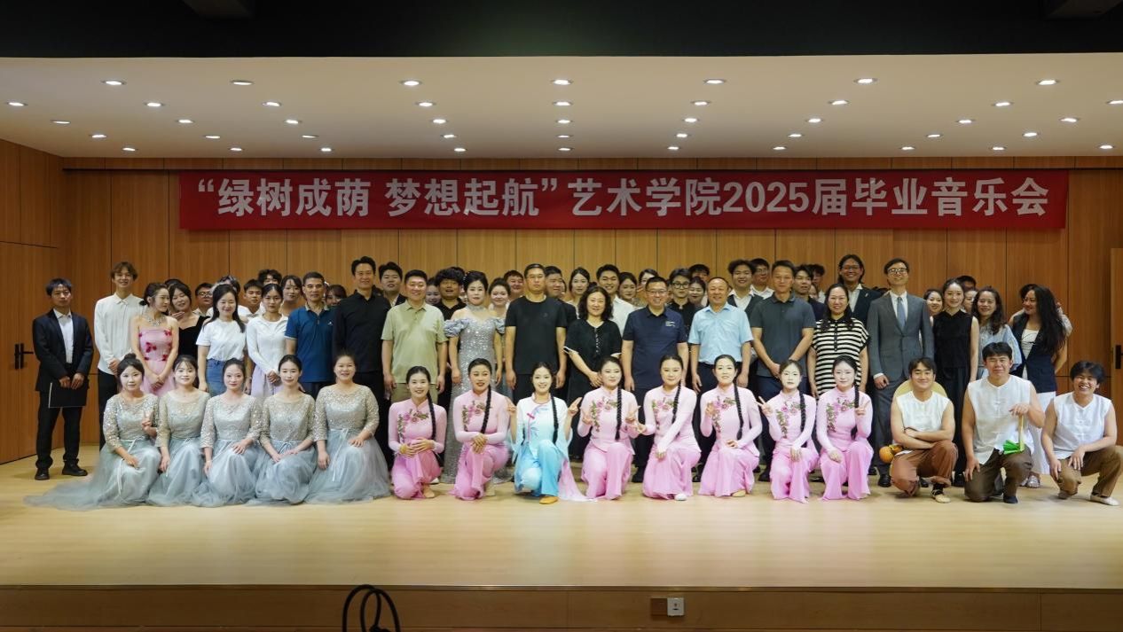 2025年6月21日,艺术学院“绿树成荫 梦想启航”2025届毕业音乐会在江北校区1401演艺厅举行。党委副书记余谦,相关职能部门、艺术学院及教师代表与毕业生参会,见证音乐学子以艺术致敬青春、启航未来。
