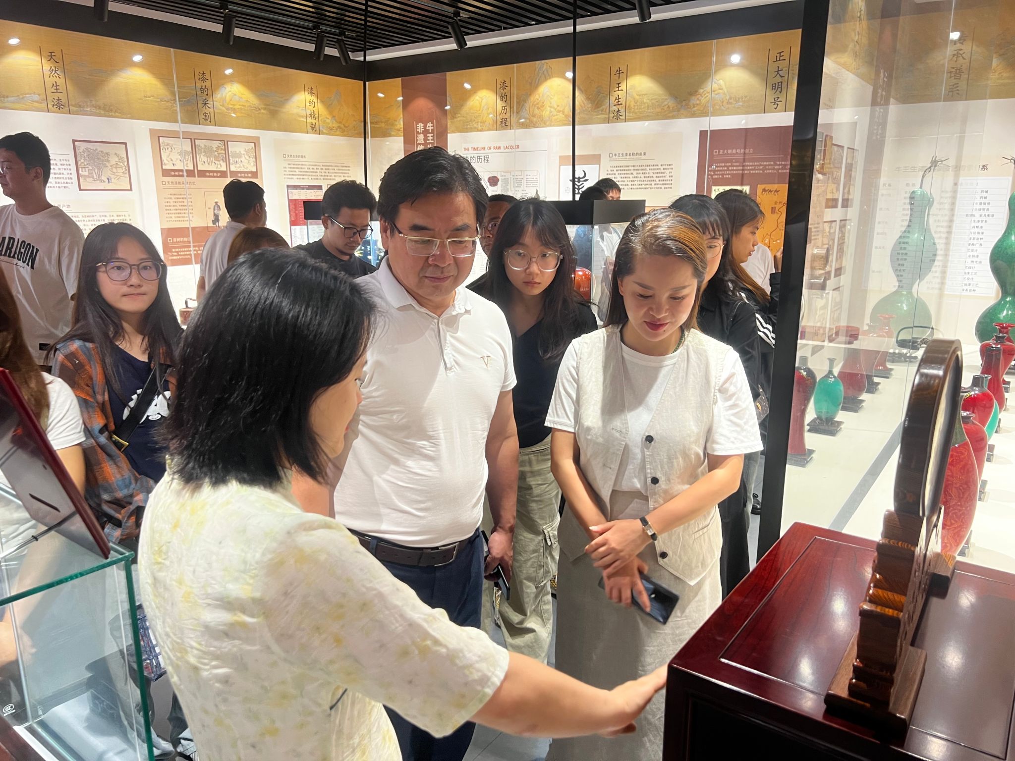 调研组实地视察了陕西龙头国漆文化产业有限公司产品展馆及工作室,双方现场举行了教科研创新基地揭牌仪式。公司副总袁端娇表示,将全力配合学校开展实践教学和教科研攻关,共同推动安康生漆产业技术创新和人才培养。
