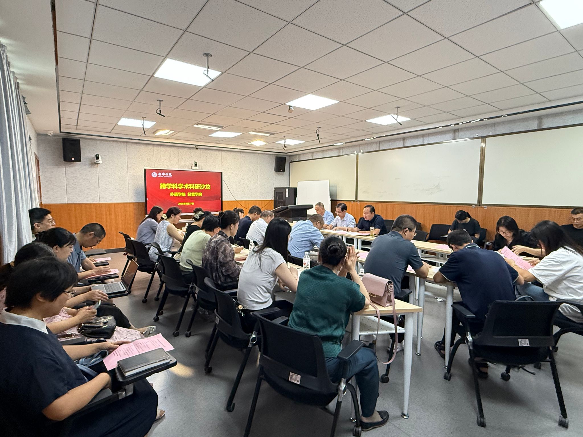 8月27日,由外语学院与经管学院联合举办的“习近平经济思想的理论逻辑与实践逻辑”跨学科学术沙龙在江南校区师范生职业技能训练中心举行。教师发展中心主任付争方、科研处副处长黎欢吉,以及来自外语学院、经管学院的相关教师齐聚一堂,聚焦高校教科研工作实际,深入探讨习近平经济思想的理论与实践逻辑。沙龙由外语学院院长张哲华主持。