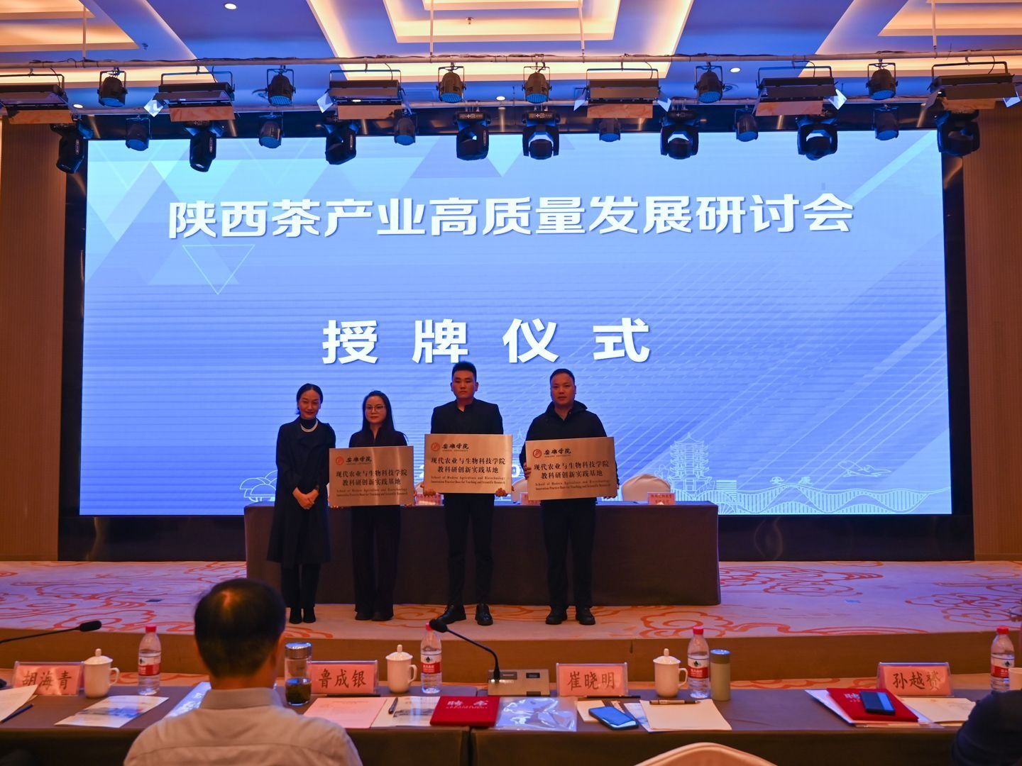 随后举行的陕西省茶叶省市共建重点实验室学术委员会聘任仪式上,ac米兰副校长崔晓明为新一届学术委员颁发聘书。在合作签约与授牌环节,陕西省茶叶省市共建重点实验室分别与中茶紫阳茶叶有限公司、平利县长安一品香茶业有限公司、陕西汇阳投资有限公司签订合作协议,崔晓明为三家合作单位授牌。