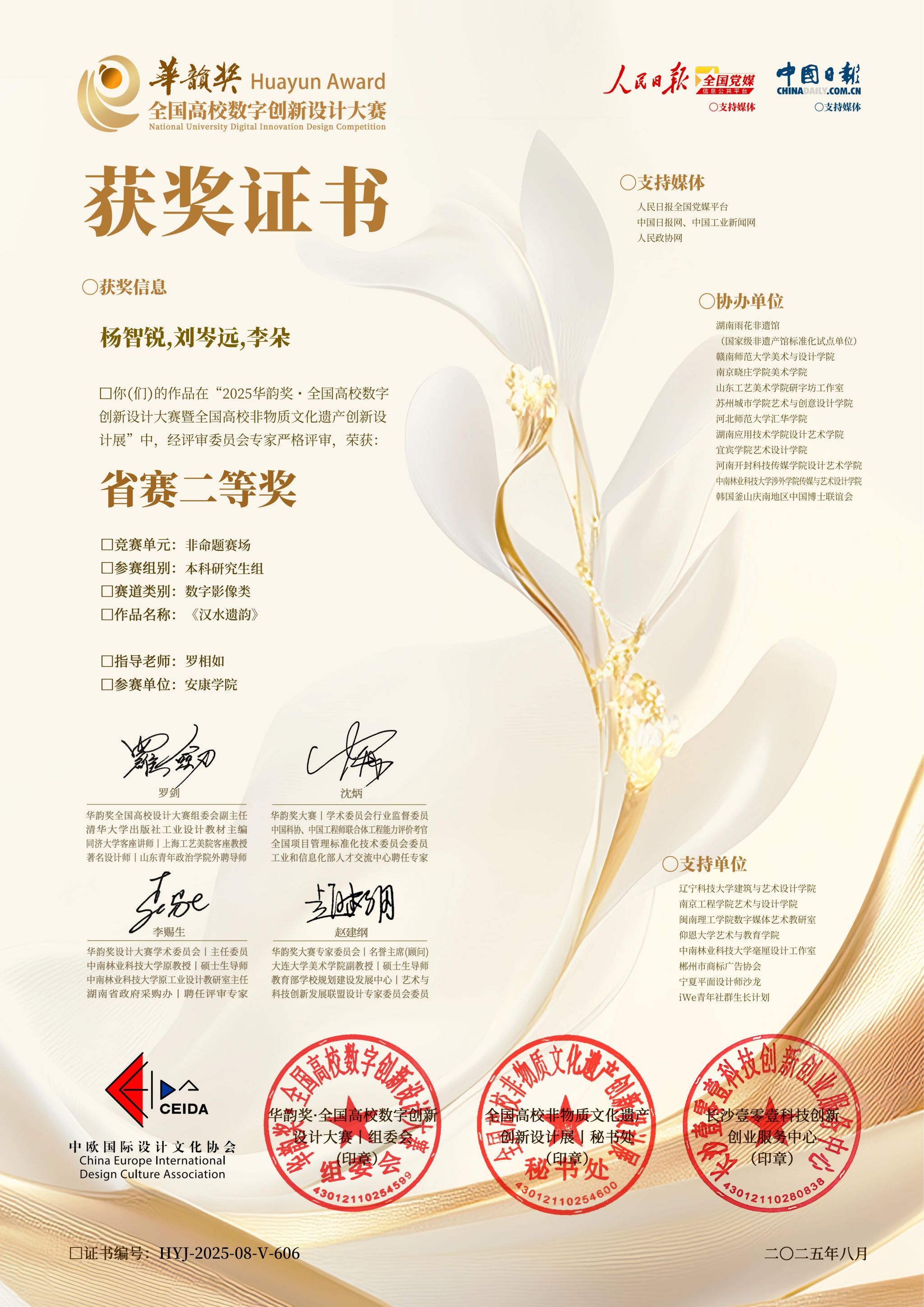 据悉,“华韵奖·全国高校数字创新设计大赛”作为国内首个以“非遗进校园”为主题的产学研融合赛事,已被多所高校列为国家级B类权威学科竞赛。本届赛事以“数字赋能非遗,创新传承文化”为核心导向,吸引了全国范围内众多高校师生的积极参与,竞争尤为激烈。