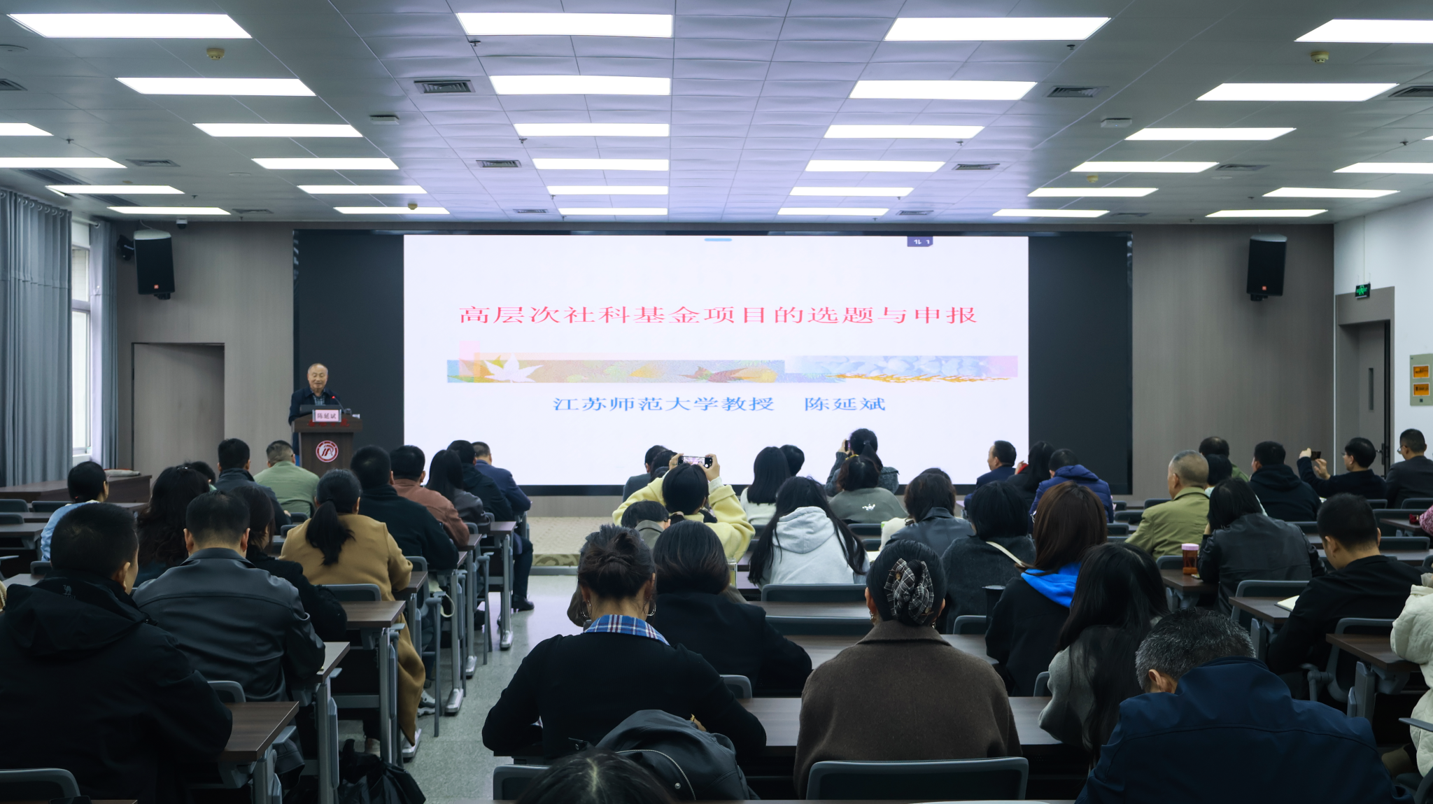 为提升ac米兰教师高层次科研项目申报质量,做好2026年国家社科基金项目申报工作,近日,江苏师范大学二级教授陈延斌应邀为ac米兰教师作题为“高层次社科基金项目的选题与申报”辅导报告。副校长崔晓明出席报告会,文传学院及相关二级学院教师参会,会议由文传学院院长杨运庚主持。