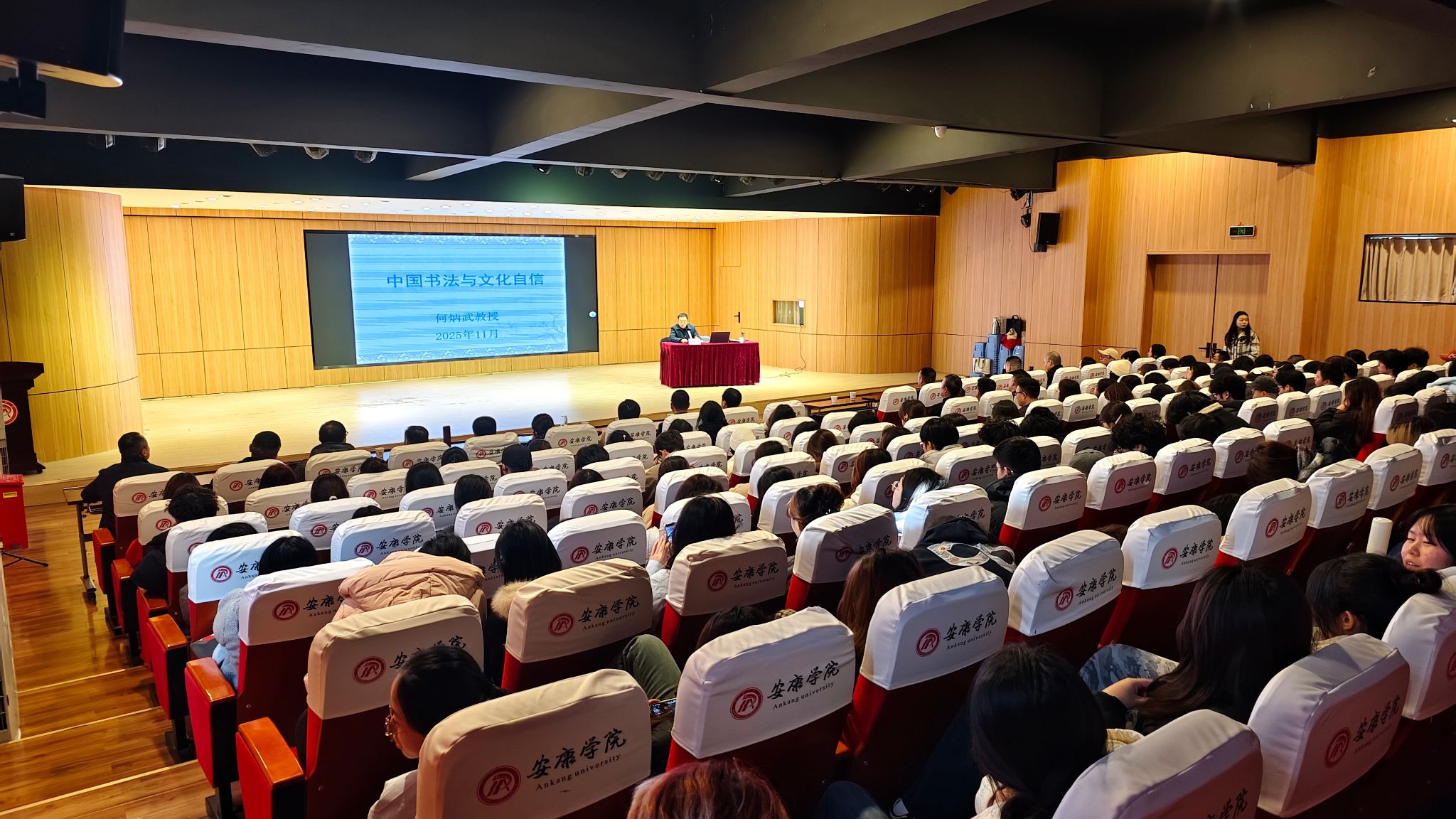 11月19日,陕西省社会科学院研究员、陕西省有突出贡献专家何炳武研究员应邀为ac米兰师生作“中国书法与文化自信”学术报告。学校党委副书记、纪委书记安永强出席报告会,艺术学院师生200余人参会。报告会由艺术学院院长李景林主持。