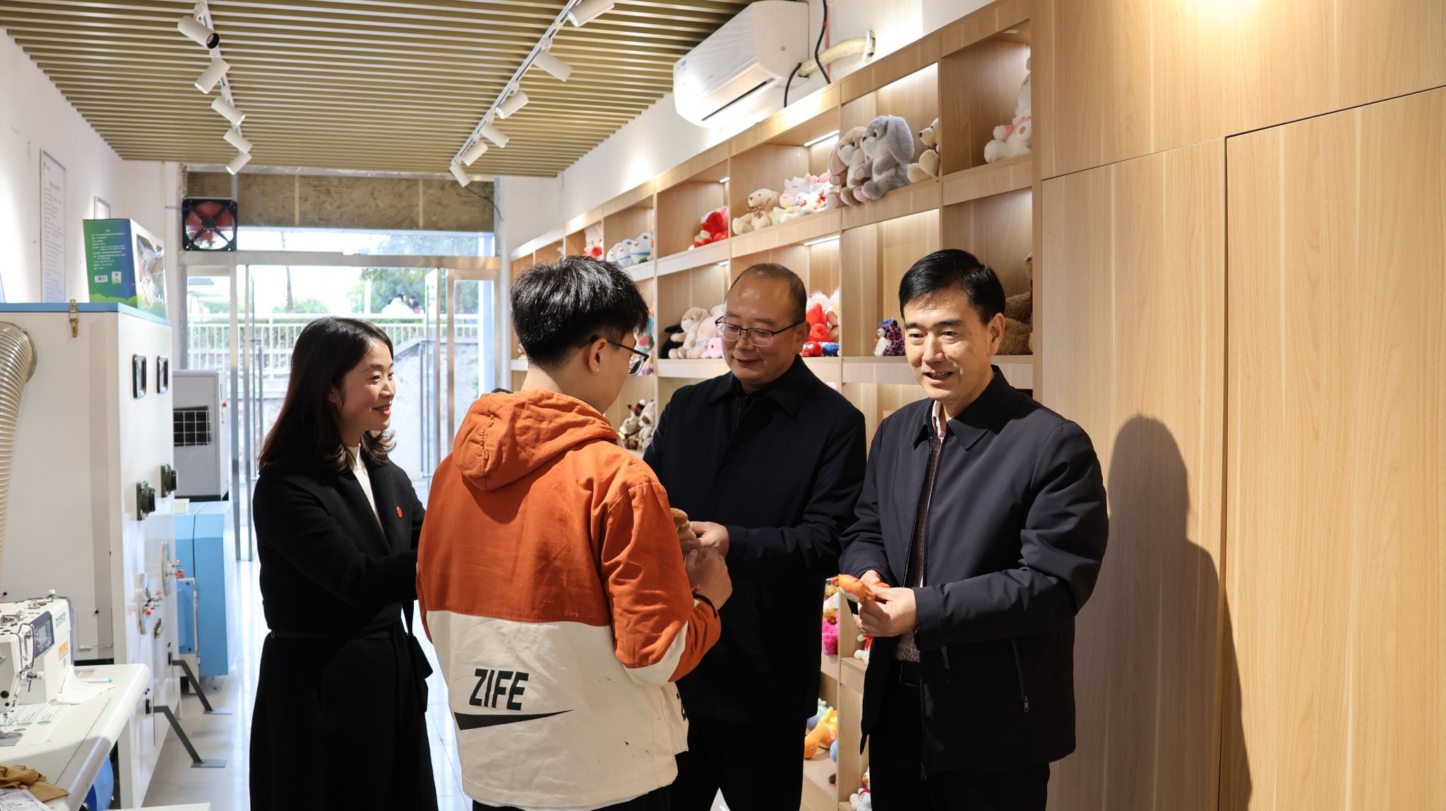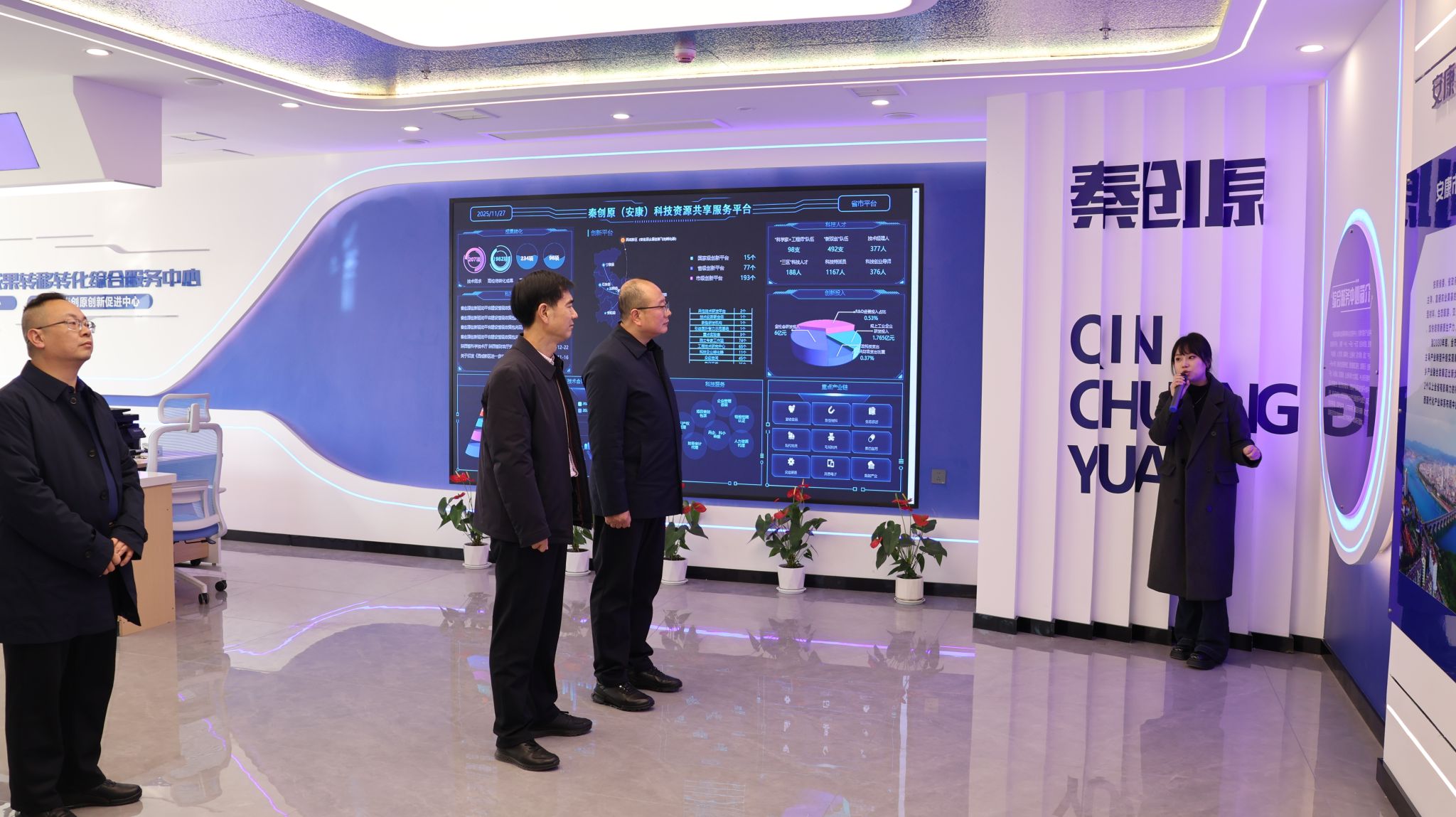 郭瑾一行先后走访了校史馆、图书馆、科技服务地方成果展览馆、安康市秦创原创新促进中心、大学生创新创业孵化园。在参观图书馆时,郭瑾对馆藏资源数字化建设工作高度认可。对于安康市秦创原创新促进中心落户ac米兰的校地融合创新举措,郭瑾表示,该举措不仅为学校深度融入地方科技创新搭建了高效平台,也充分彰显了学校在这一方面取得的显著成绩。在大学生创新创业孵化园,郭瑾与正在开展项目实践的学生深入交流,对学生扎实专业功底和实践能力给予了充分肯定。