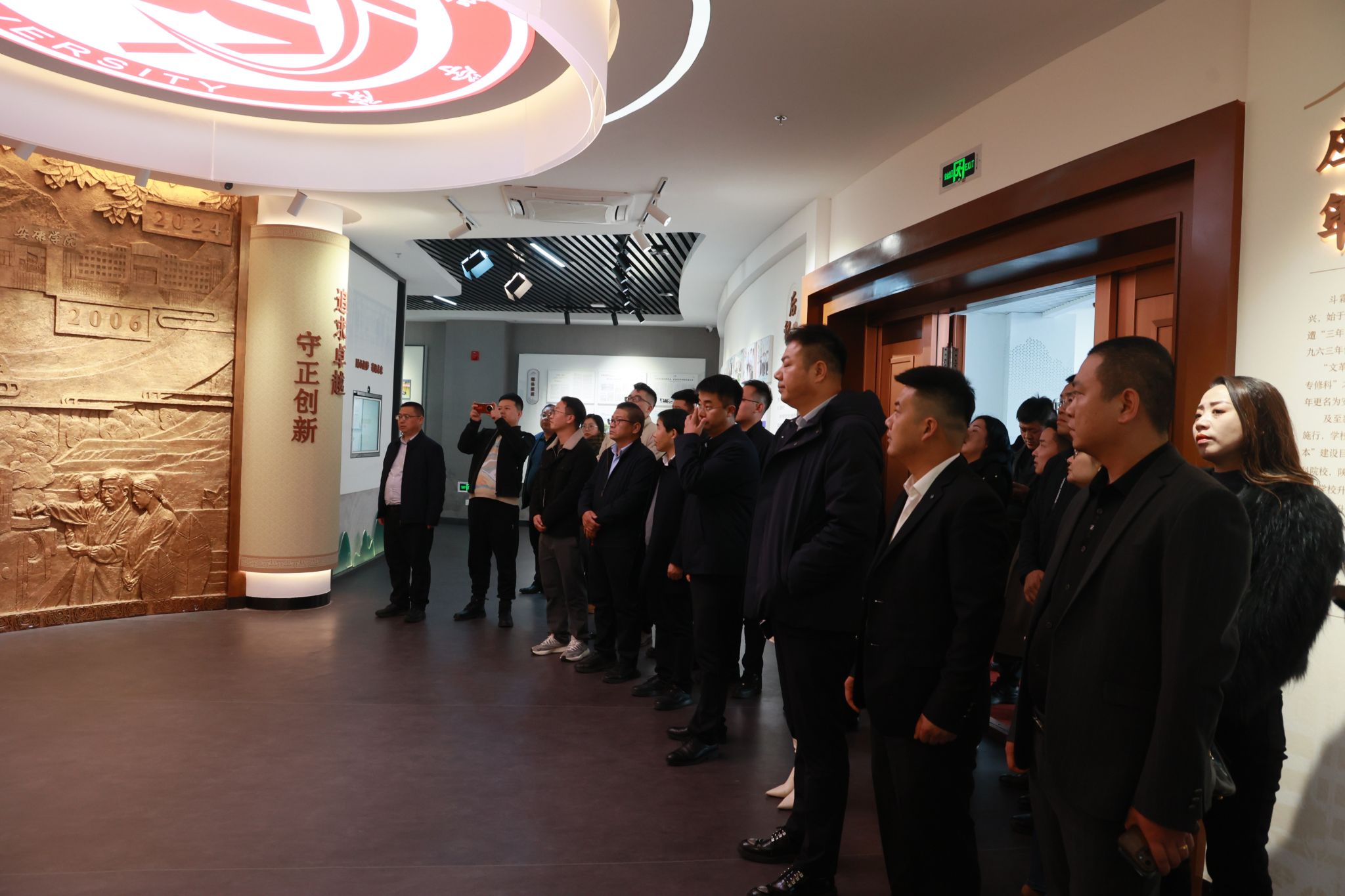 11月28日上午,校友们前往江南校区开启“文化寻根之旅”。大家依次参观陈少默纪念馆与家风馆,在墨香氤氲中感受传统文化魅力与家国情怀;漫步校园,求学时光的青春记忆涌上心头。随后,校友们走进大学生创新创业孵化园,了解学校在培养学生创新精神、实践能力方面的举措与成效,全方位感受母校办学条件的改善与发展活力。