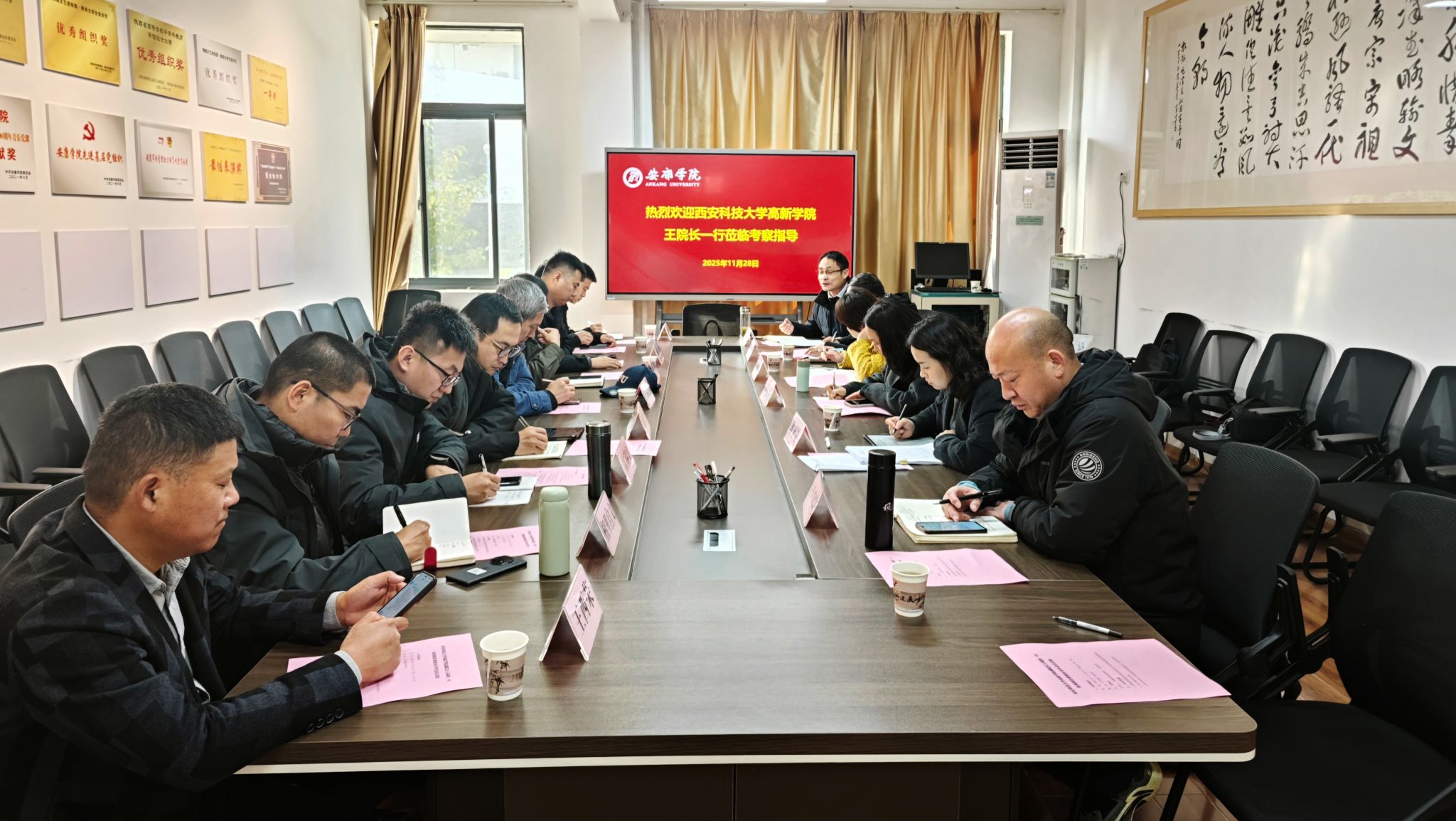 11月28日,西安科技大学高新学院副院长王福豹一行9人来校调研,副校长崔晓明,后勤处、教务处、科研处、基建处、农生学院等部门负责人陪同调研并参加座谈。