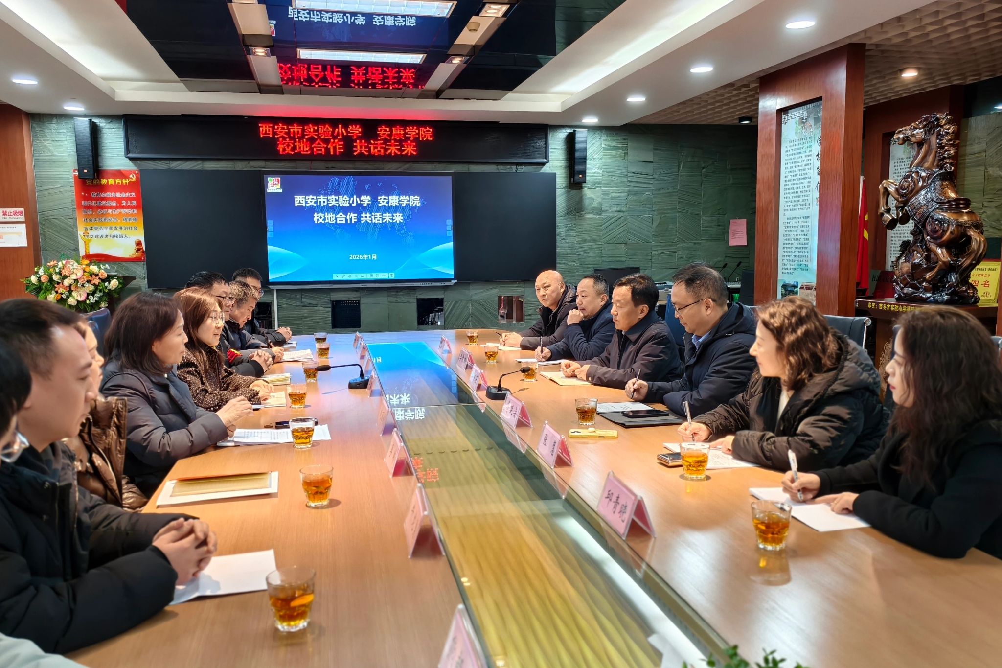 为深入贯彻党中央、国务院关于高校毕业生就业工作的决策部署,全面落实陕西省教育厅“优企引才”定向访企拓岗促就业专项行动要求,深化产教融合、校企合作,拓宽毕业生就业渠道,1月21日,党委书记钟生海带领党政办、学工部、艺术学院负责人前往西安,开展访企拓岗专项活动,先后走访西安易俗社有限公司与西安实验小学,实地考察、座谈交流并洽谈合作。