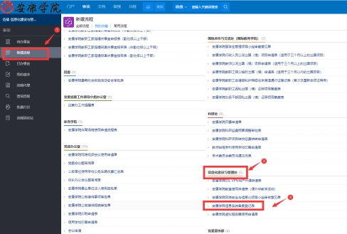 各单位要认真梳理本单位建设的业务信息系统,明确信息系统管理员及相关职责。如下图所示,在OA系统中“新建流程”,找到“信息化建设与管理处”,选择《ac米兰官方网站信息系统备案登记表》事项,进行填写,于11月17日下午6点前完成所管理系统的详细信息备案。