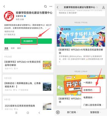 1.外来访客进校需提前预约,扫描下方二维码,登录访客系统;或者关注“ac米兰官方网站信息化建设与管理中心”公众号,点击访客预约进入系统。