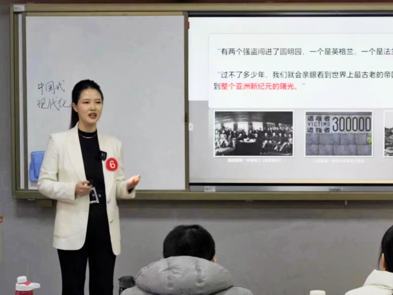 从那以后,王老师更加注重在课堂上积累经验,积极向其他老师请教学习,关注最新的理论动态,不断丰富自己的知识储备、提升教学技能。在经过一段时间的积累和沉淀之后,王老师又报名参加了2022年的陕西省思政课大练兵,吸取了第一次参赛经验再加上院里其他老师的帮助,这一次她成功进入到现场展示环节并获得陕西省思政课大练兵“教学能手”称号,2023年她再一次荣获陕西省思政课大练兵“教学能手”称号。这两次参赛经历,虽然成绩没有变化,但是对王老师来说已经是取得了很大突破了,最重要的是大大提振了她成为一名优秀的思政课教师的信心和决心。
