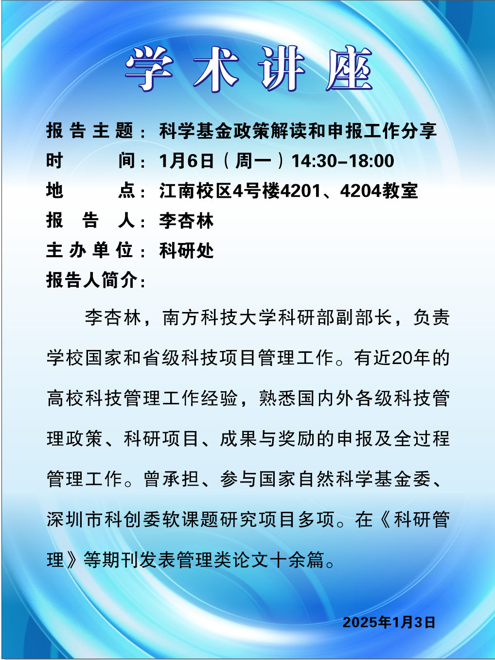 时间:2025年1月6日14:30-18:00