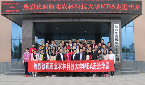2015级 MBA师生第二站来到陕西华秦农牧科技有限公司。据悉,陕西华秦农牧科技有限公司是杨凌示范区直属的国有独资企业、农业产业化国家级重点龙头企业、全国饲料百强企业。公司现有总资产2.3亿元,年产值7亿元,公司生产“华秦”、“劲达”牌系列饲料,涵盖畜禽、反刍、水产4个系列、80多个种类,产品畅销国内20多个省区。