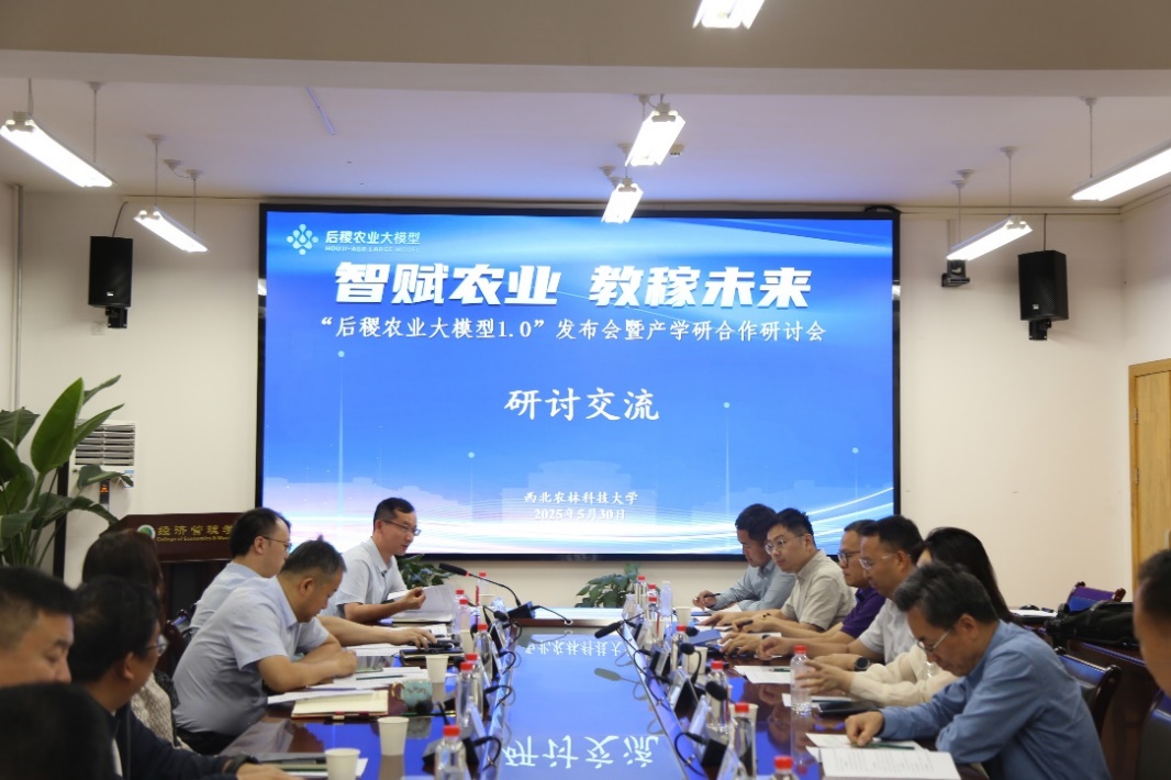 5月30日,“后稷农业大模型1.0”发布会暨产学研合作研讨会在伟德官网伟德betvlctor国际官网C304会议室举行,陕西农发集团、杨凌示范区科技创新和转化推广局、中国农业银行咸阳分行、杭州艾格睿科技有限公司等政府部门、银行、企业受邀参加,学校教务处、科学技术发展研究院、新农村发展研究院、信息化管理处、植物保护学院、信息工程学院、理学院、园艺学院、伟德betvlctor国际官网等部门负责人参会,会议由经管学院院长石宝峰主持。