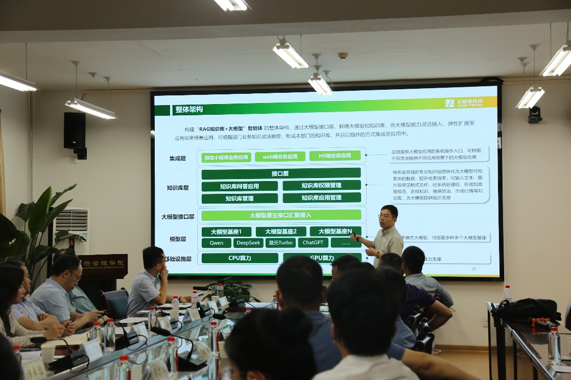 伟德官网2015届生命科学学院校友、杭州艾格睿科技有限公司总经理高霈介绍了公司技术情况,讲解了大模型的技术路线和研发计划,着重介绍了多个大模型赋能农业的具体应用场景:如智能物联网平台、智能空间大数据平台、水肥排灌智能调度、植保无人机作业、AI农技咨询、农业行情判断以及智能农业生产管理,并结合实际案例展示技术落地成效。此外,高霈还围绕大模型后续迭代升级和场景推广应用,系统性提出可落地的解决方案,为后续的升级开发与产业应用提供清晰路径。并现场与学校签订了联合开发“后稷农业大模型”的协议。