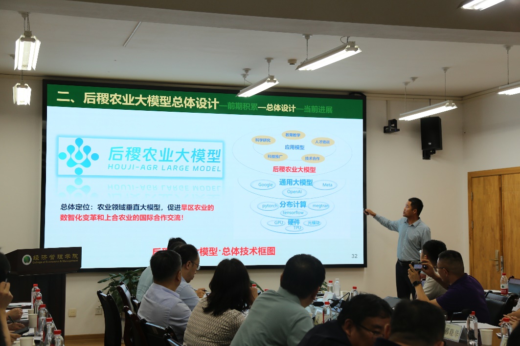 会上,项目负责人、伟德betvlctor国际官网西部农村发展研究中心主任、农业数智化现代产业学院院长阮俊虎教授介绍了“后稷农业大模型1.0”的研发背景、技术架构、未来规划、使用功能和应用场景。该模型充分发挥学校在旱区农业科研领域的学科优势,依托学校的海量高质量农业知识数据训练而成,深度融合农业专业知识,具备自然语言处理、计算机视觉、多模态等能力,可以实现农业文本语义理解、农业图片识别、农业知识问答、农业生产决策推理等多项功能。