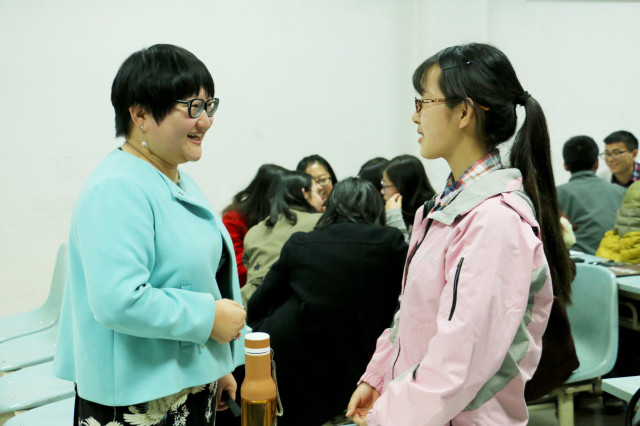 “站在巨人的肩膀上看世界”,张老师在授课中希望大家能够走出国门,拥有国际化视野。她表明推进大众创业、万众创新,是时代发展的必然产物,是经济新常态下社会发展新动力的必然选择,加速中国经济转型升级的新引擎。她通过“四个共同”使同学们真正和老师一起参与到课堂中,帮助大家在创业过程中少走弯路。课堂上,老师鼓励同学们理性分析自我,准确定位自我,确定自己是否适合创业;课间,她还和同学们一起分享了自己的求学及成长经历,风趣幽默;针对不同学生对创业的需求,张老师介绍了自己的教学计划;课后,她布置的创业任务生动有趣、别具风格。