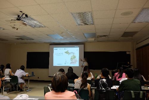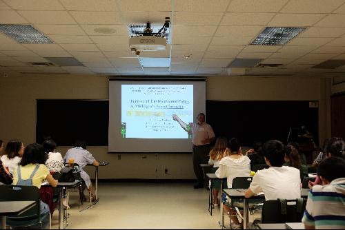 7月28日下午,密歇根州立大学林学院的Dr. Karen Potter-Witter为大家带来了关于密歇根州私人林场与林业发展的精彩讲座。课堂上,Dr. Karen Potter-Witter运用大量图表及GIS专题图为访学团成员生动地讲解了有关林地分布及变化趋势、土地拥有者经营目标和林业政策等方面的问题,并且特别提到了密歇根州立大学是美国1862年颁布《莫雷尔法案》后的第一所赠地大学(Land-Grant University),该法案促进了美国高等教育的大发展,推动了美国工农业生产的大跃进。《莫雷尔法案》也促进了增地大学能够真正实现“产、学、研”的结合,对我国高校实现“产、学、研”结合发展有重要借鉴意义。在课堂接近尾声时,Dr. Karen Potter-Witter用生动形象情景表演为同学解答了有关市场失灵的问题,寓教于乐同时寓学于乐,令大家印象深刻。
