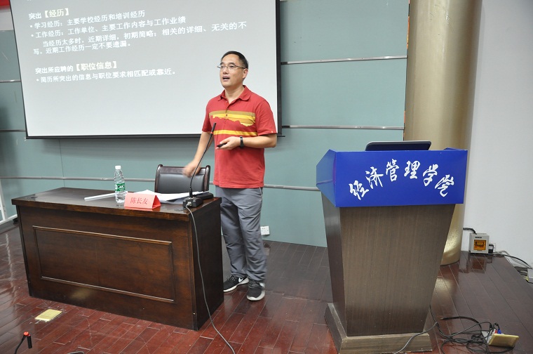 为进一步做好就业指导,帮助求职学生赢在起点, 9月19日晚,就业指导中心市场部部长陈长友老师受邀在伟德官网603会议室为学生做关于“求职简历制作”的专题报告会。伟德官网本科生、研究生近200名学生参加了此次报告会。